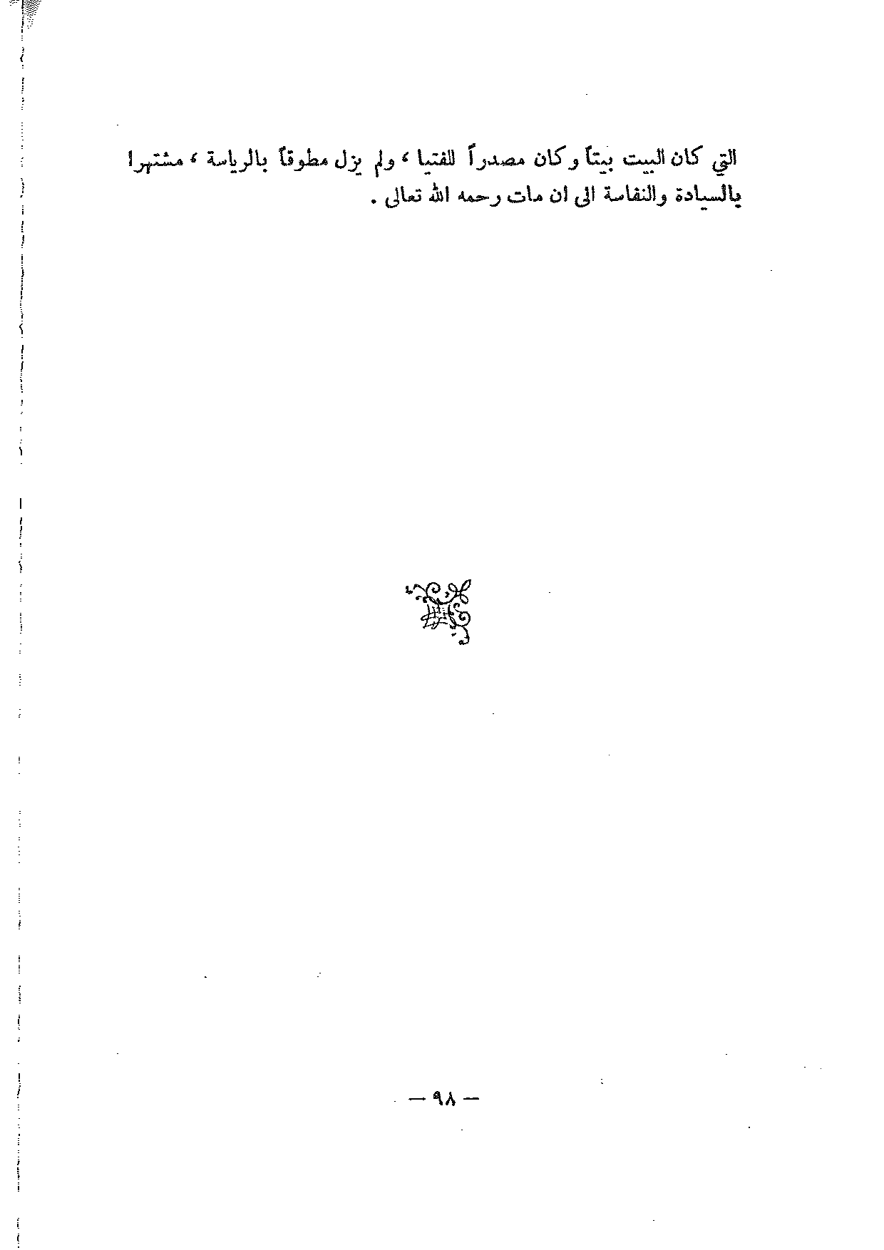 التي كان البيت بيتا وكان مصدرا للفتيا، ولم يزل مطوقا بالرياسة، مشتهرا بالسيادة والنفاسة إلى أن مات رحمه الله تعالى.