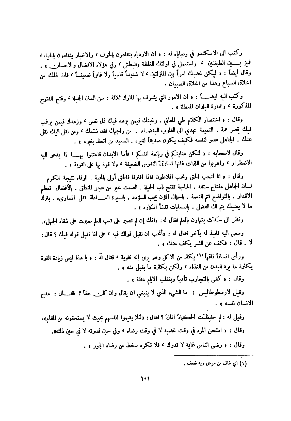 وَقيل لأرسطوطاليس مَا الشَّيْء الَّذِي لَا يَنْبَغِي أَن يُقَال وَإِن كَانَ حَقًا فَقَالَ مدح الْإِنْسَان نَفسه