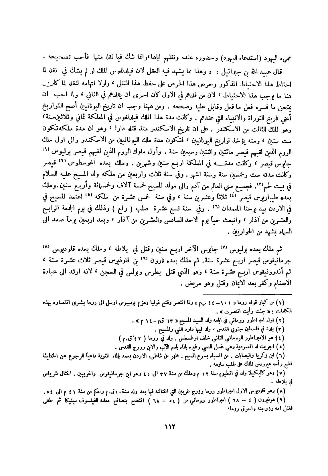 على أَن تَارِيخ الْإِسْكَنْدَر مُنْذُ قَتله دَارا وَهُوَ أَن مُدَّة ملكه تكون سِتّ سِنِين وَمِنْه يُؤْخَذ تواريخ اليونانيين فَتكون مُدَّة ملك اليونانيين من الْإِسْكَنْدَر وَإِلَى أول ملك الرّوم الَّذين لقبهم قَيْصر مِائَتَيْنِ واثنتين وَسبعين سنة