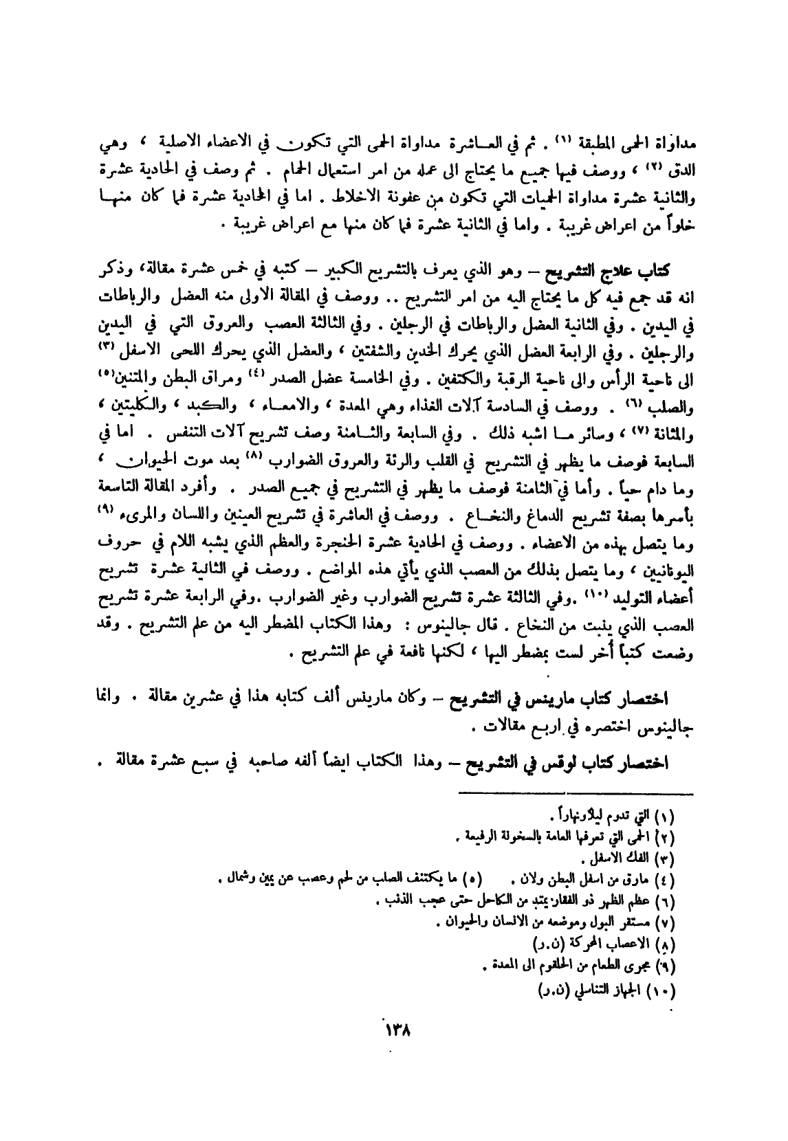 قَالَ جالينوس وَهَذَا الْكتاب الْمُضْطَر إِلَيْهِ من علم التشريح