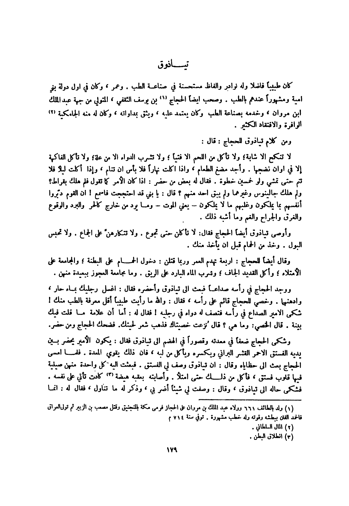 وَمن كَلَام تياذوق للحجاج قَالَ