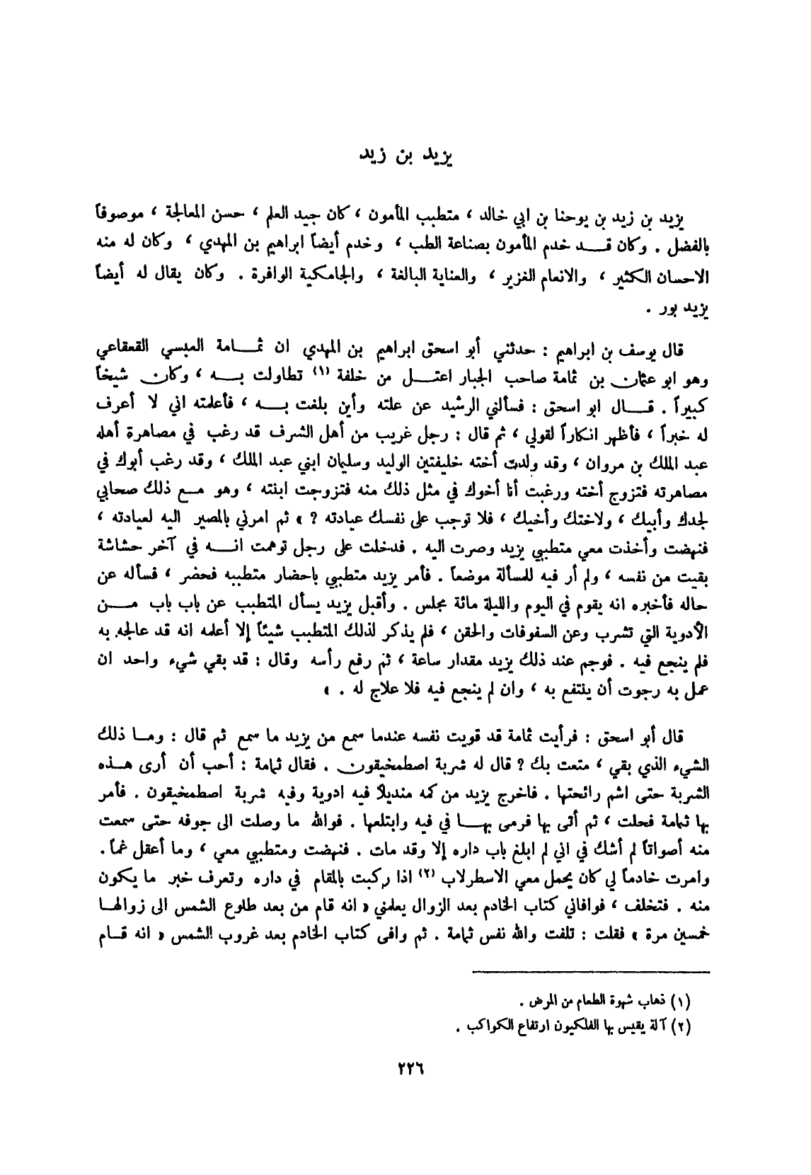 فَأمر يزِيد متطببي بإحضار متطببه فَحَضَرَ فَسَأَلَهُ عَن حَاله فَأخْبرهُ أَنه يقوم فِي الْيَوْم وَاللَّيْلَة مائَة مجْلِس