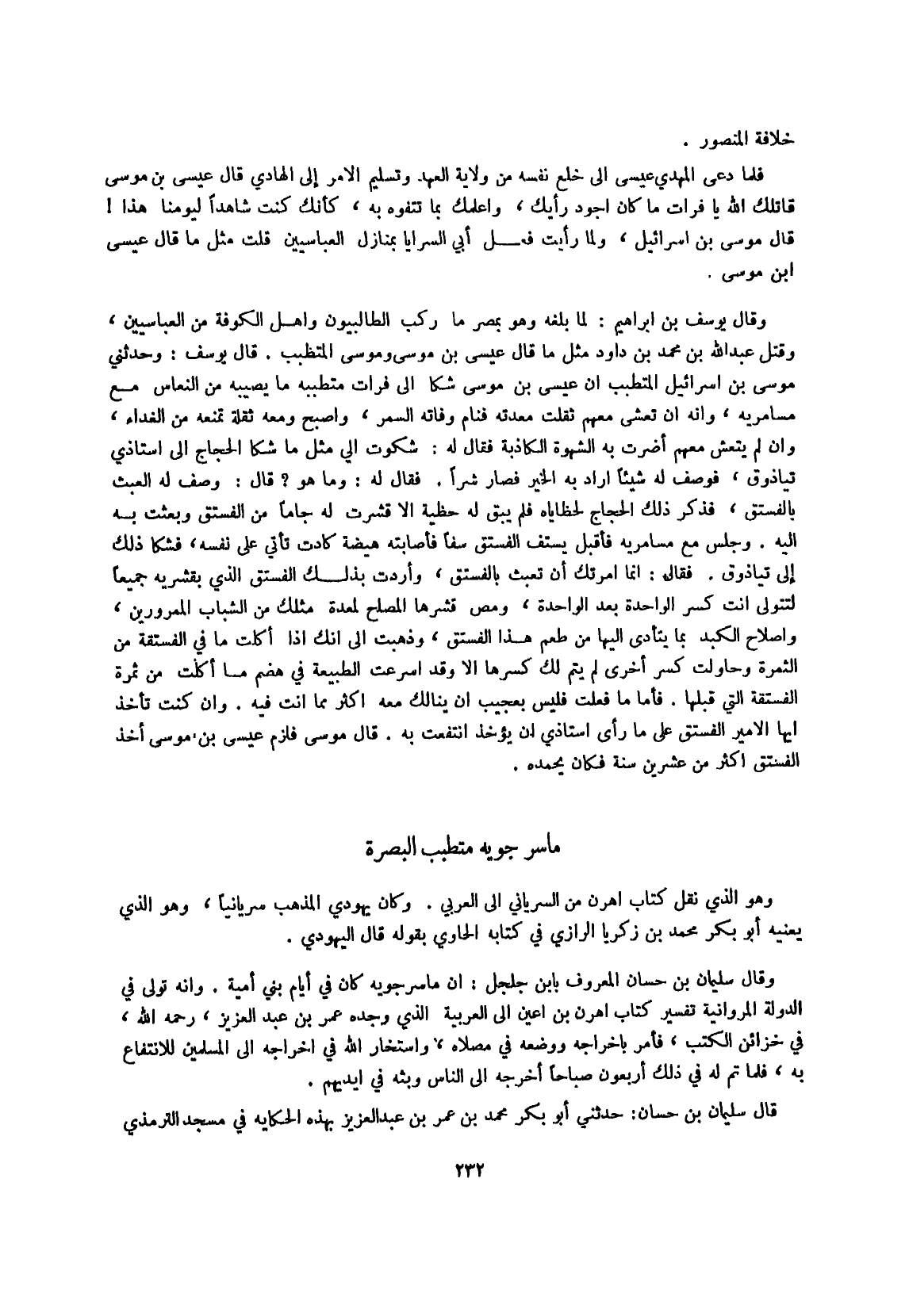 وَقَالَ سُلَيْمَان بن حسان الْمَعْرُوف بِابْن جلجل أَن ماسرجويه كَانَ فِي أَيَّام بني أُميَّة