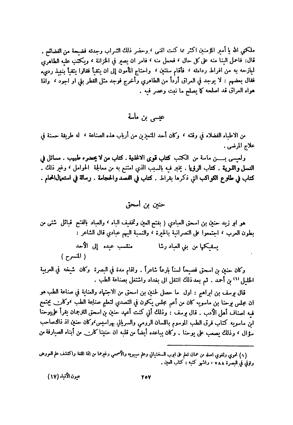 وَكَانَ حنين بن إِسْحَق فصيحا لسنا بارعا شَاعِرًا