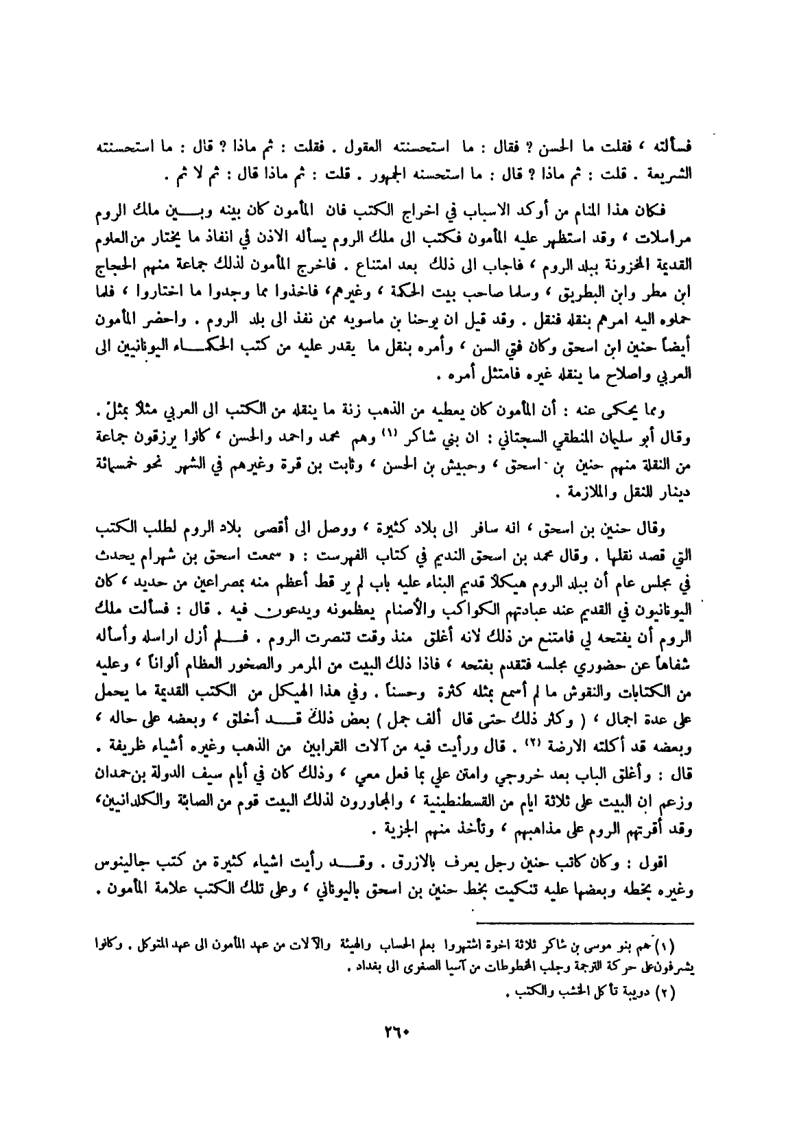 وأحضر الْمَأْمُون أَيْضا حنين ابْن إِسْحَق وَكَانَ فتي السن وَأمره بِنَقْل مَا يقدر عَلَيْهِ من كتب الْحُكَمَاء اليونانيين إِلَى الْعَرَبِيّ وَإِصْلَاح مَا يَنْقُلهُ غَيره فامتثل أمره