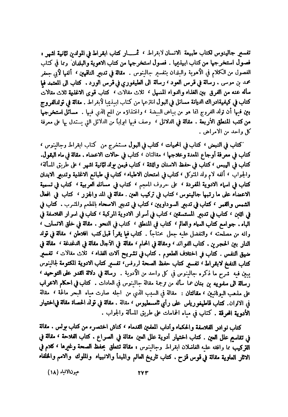 كتاب فِي تشريح آلَات الْغذَاء ثَلَاث مقالات تَفْسِير كتاب النفخ لأبقراط تَفْسِير كتاب حفظ الصِّحَّة لروفس تَفْسِير كتاب الْأَدْوِيَة المكتومة لِجَالِينُوسَ يبين فِيهِ شرح مَا ذكره جالينوس فِي كل وَاحِد من الْأَدْوِيَة
