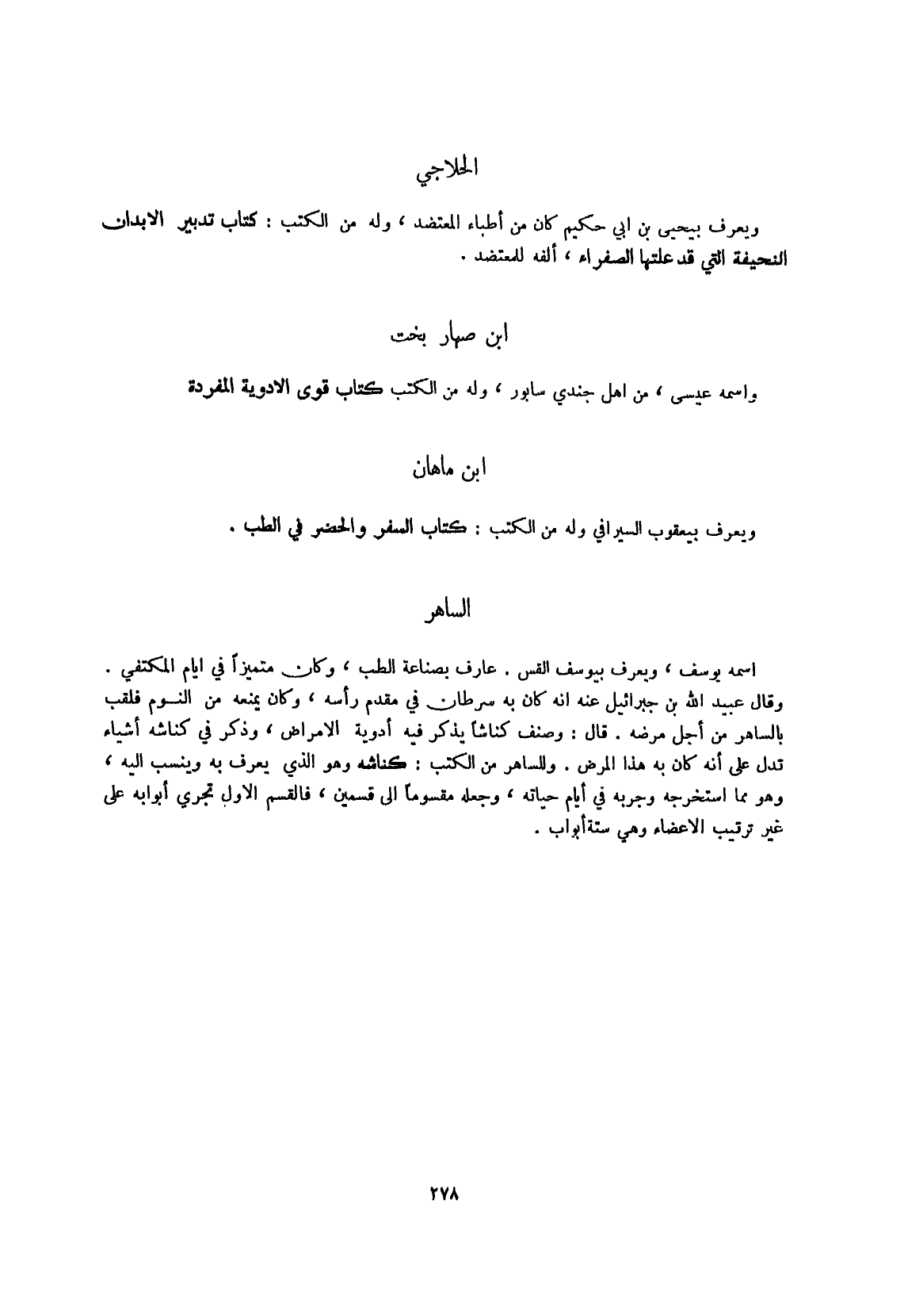 وَيعرف بِيَحْيَى بن أبي حَكِيم كَانَ من أطباء المعتضد وَله من الْكتب كتاب تَدْبِير الْأَبدَان النحيفة الَّتِي قد علتها الصَّفْرَاء أَلفه للمعتضد