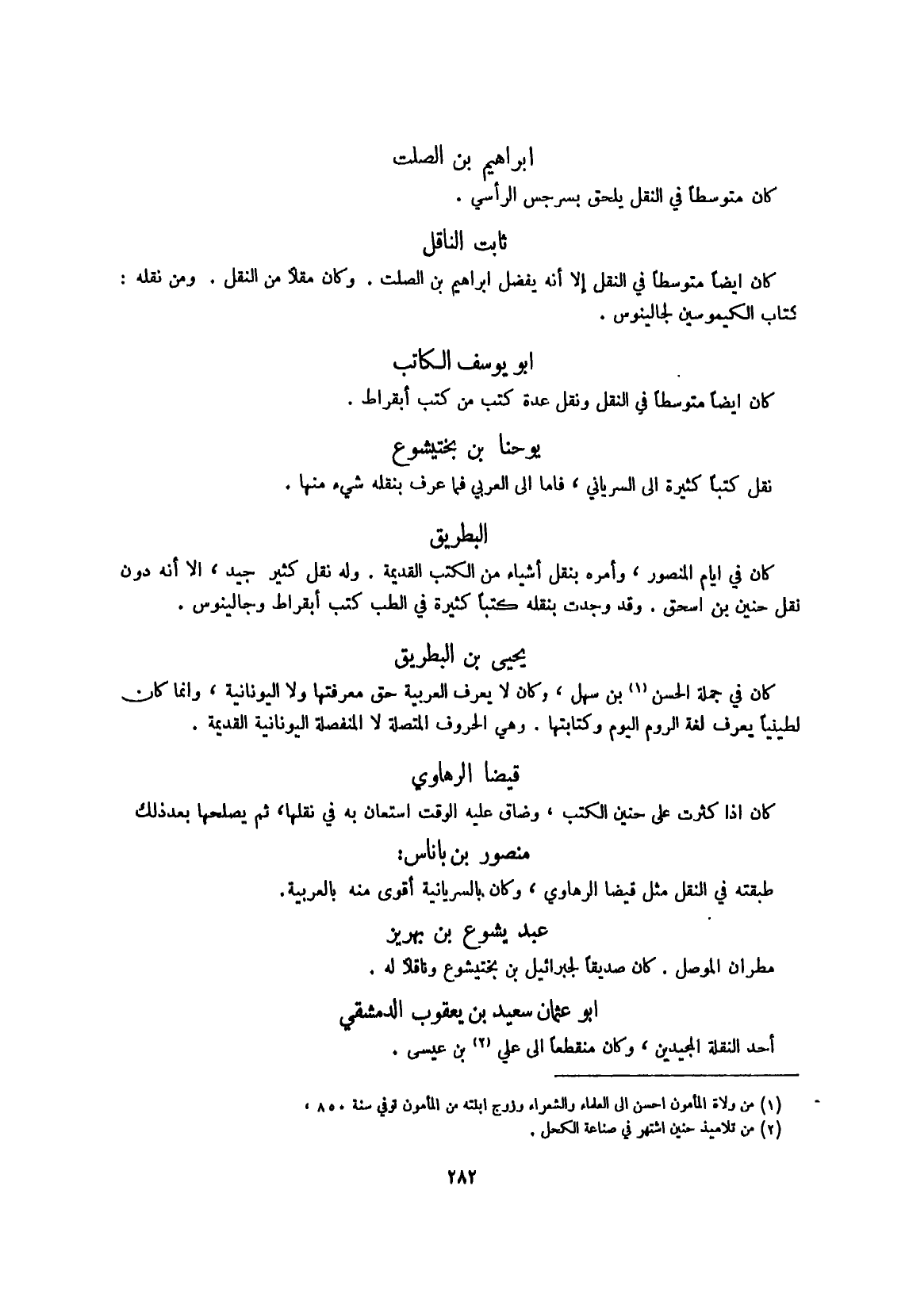 كَانَ فِي جملَة الْحسن بن سهل وَكَانَ لَا يعرف الْعَرَبيَّة حق مَعْرفَتهَا وَلَا اليونانية وَإِنَّمَا كَانَ لطينيا يعرف لُغَة الرّوم الْيَوْم وكتابتها