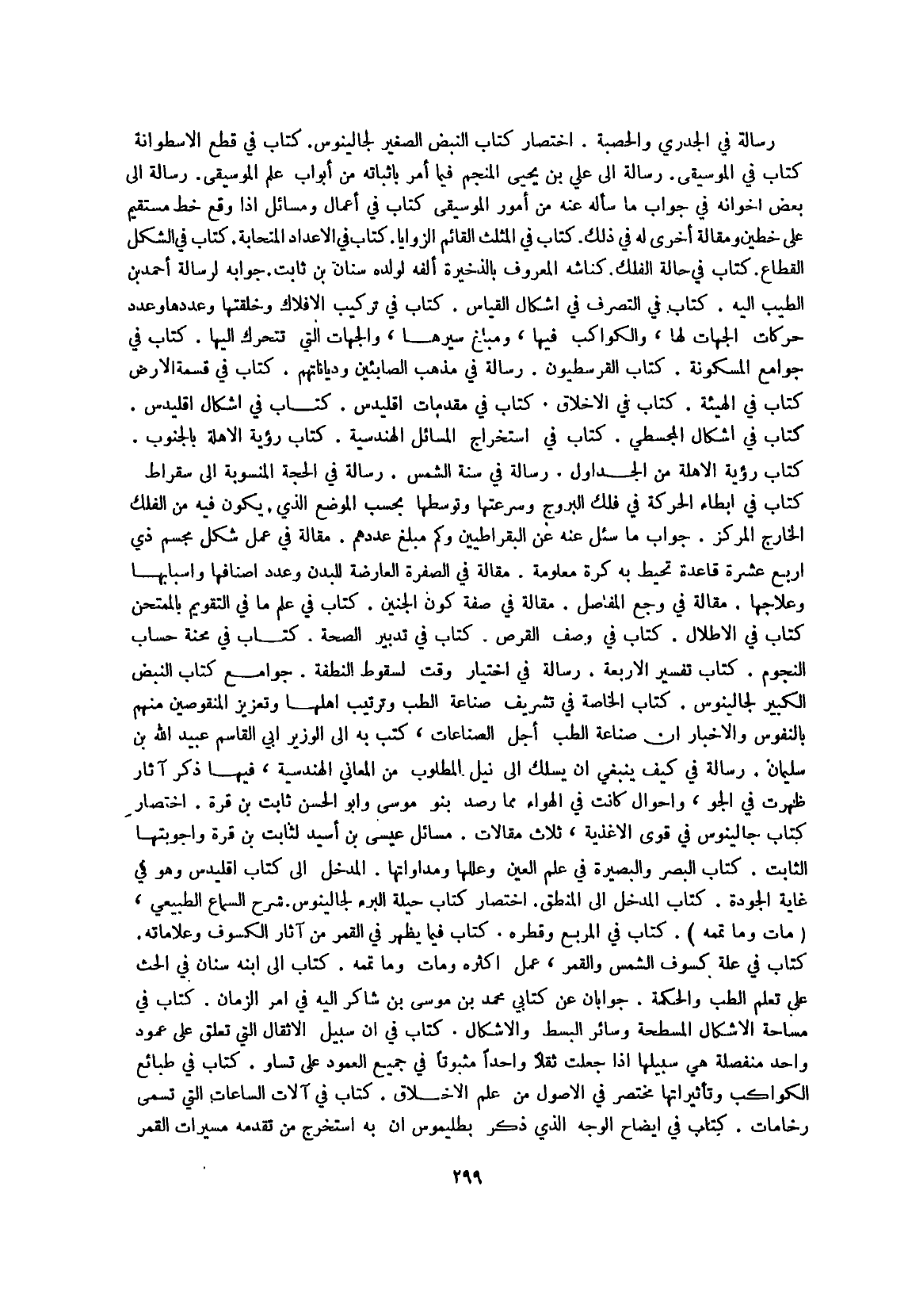 رِسَالَة إِلَى بعض إخوانه فِي جَوَاب مَا سَأَلَهُ عَنهُ من أُمُور الموسيقى كتاب فِي أَعمال ومسائل إِذا وَقع خطّ مُسْتَقِيم على خطين ومقالة أُخْرَى لَهُ فِي ذَلِك