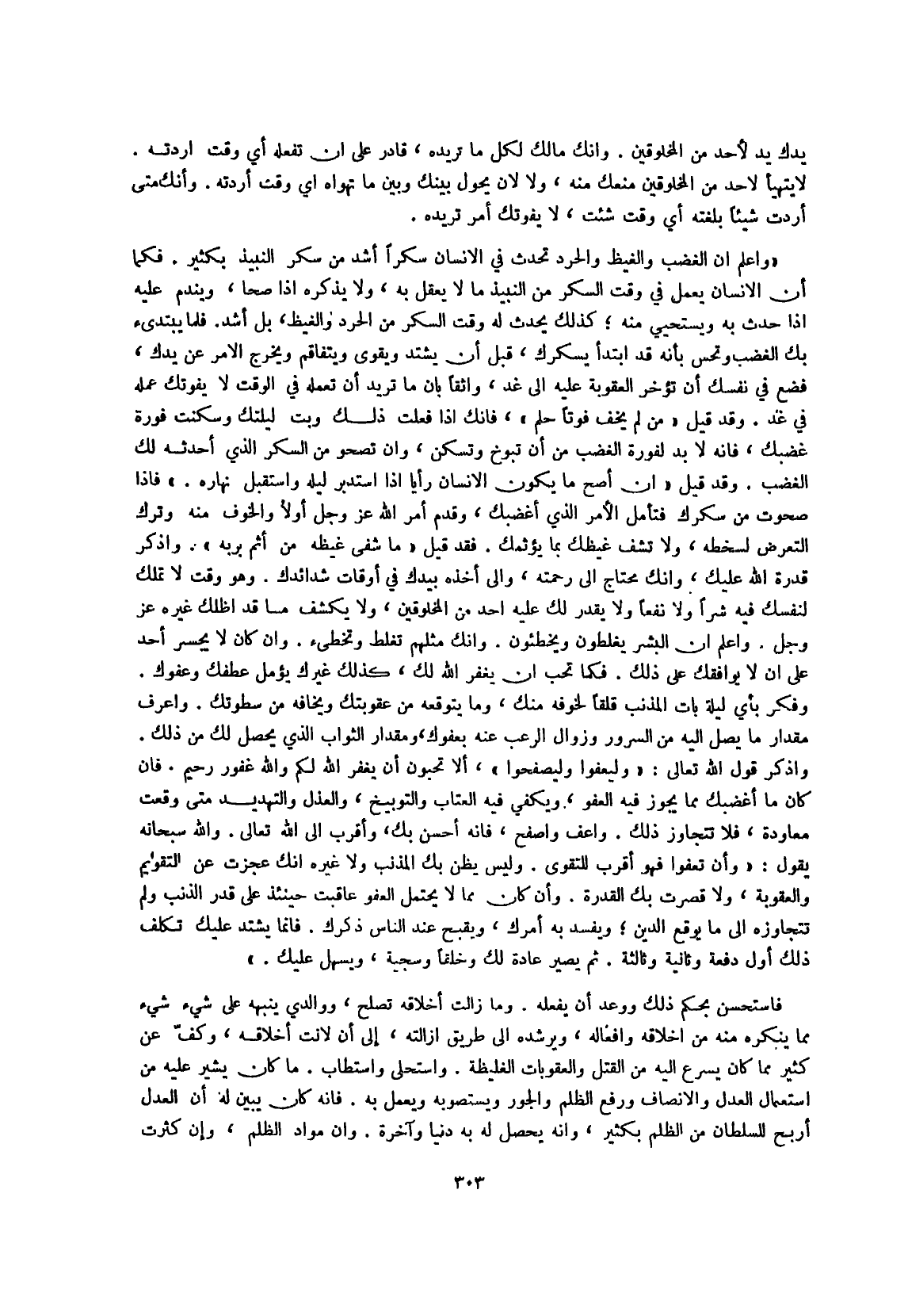 فَإِذا صحوت من سكرك فَتَأمل الْأَمر الَّذِي أغضبك وَقدم أَمر الله عز وَجل أَولا وَالْخَوْف مِنْهُ وَترك التَّعَرُّض لسخطه وَلَا تشف غيظك بِمَا يؤثمك