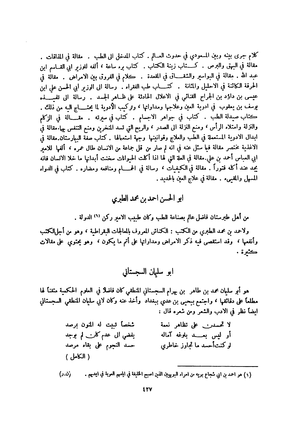 من أهل طبرستان فَاضل عَالم بصناعة الطِّبّ وَكَانَ طَبِيب الْأَمِير ركن الدولة