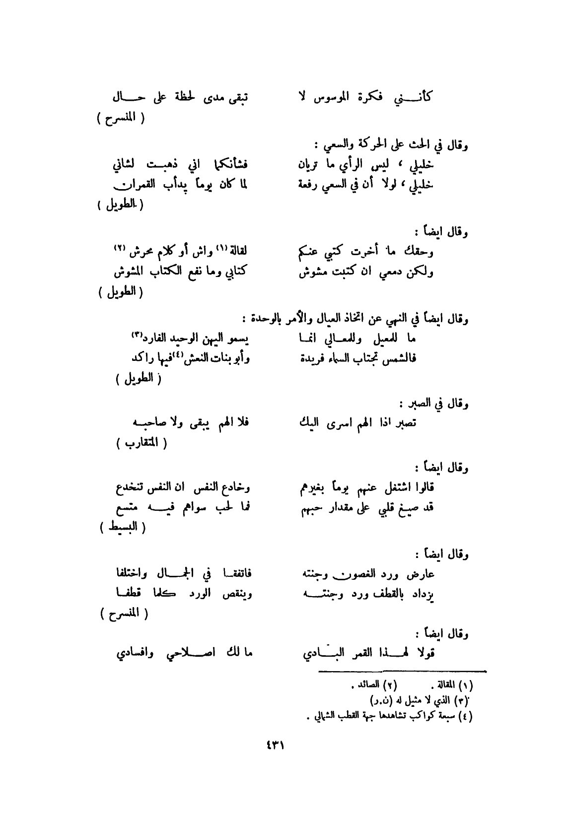 (خليلي لَوْلَا أَن فِي السَّعْي رفْعَة ... لما كَانَ يَوْمًا يدأب القمران) الطَّوِيل