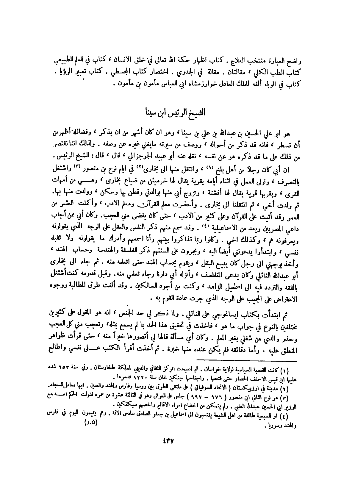 وَلذَلِك أننا نقتصر من ذَلِك على مَا قد ذكره هُوَ عَن نَفسه نَقله عَنهُ أَبُو عبيد الجوجزاني قَالَ قَالَ الشَّيْخ الرئيس