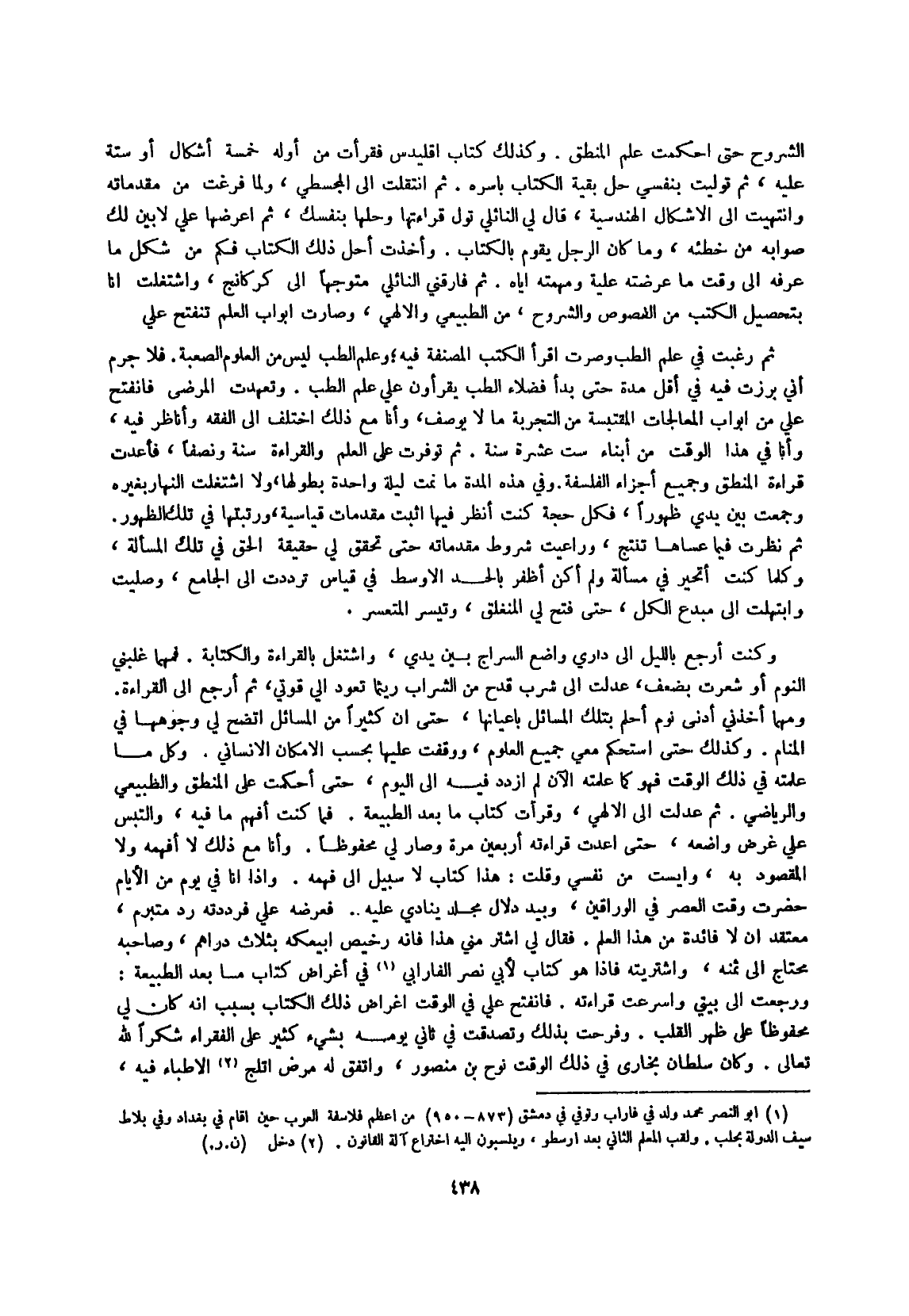 ثمَّ توفرت على الْعلم وَالْقِرَاءَة سنة وَنصفا فَأَعَدْت قِرَاءَة الْمنطق وَجَمِيع أَجزَاء الفلسفة