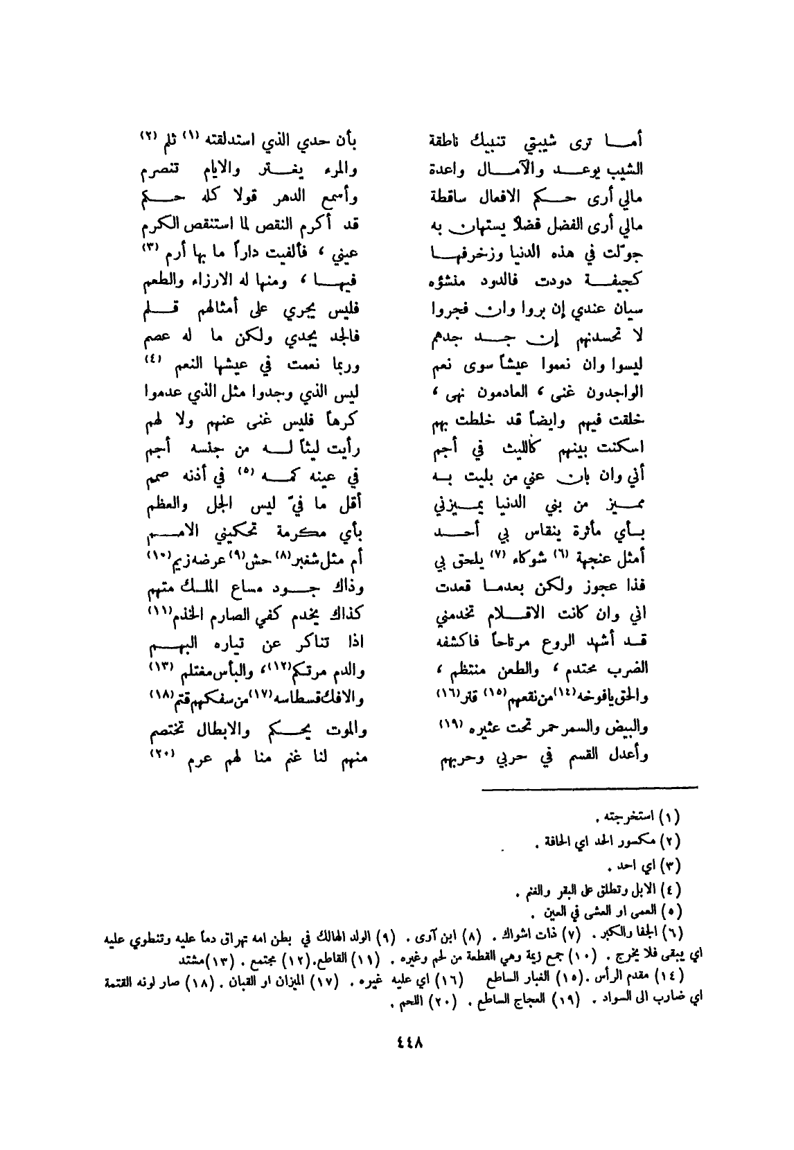(لَيْسُوا وَإِن نعموا عَيْشًا سوى نعم ... وَرُبمَا نعمت فِي عيشها النعم)