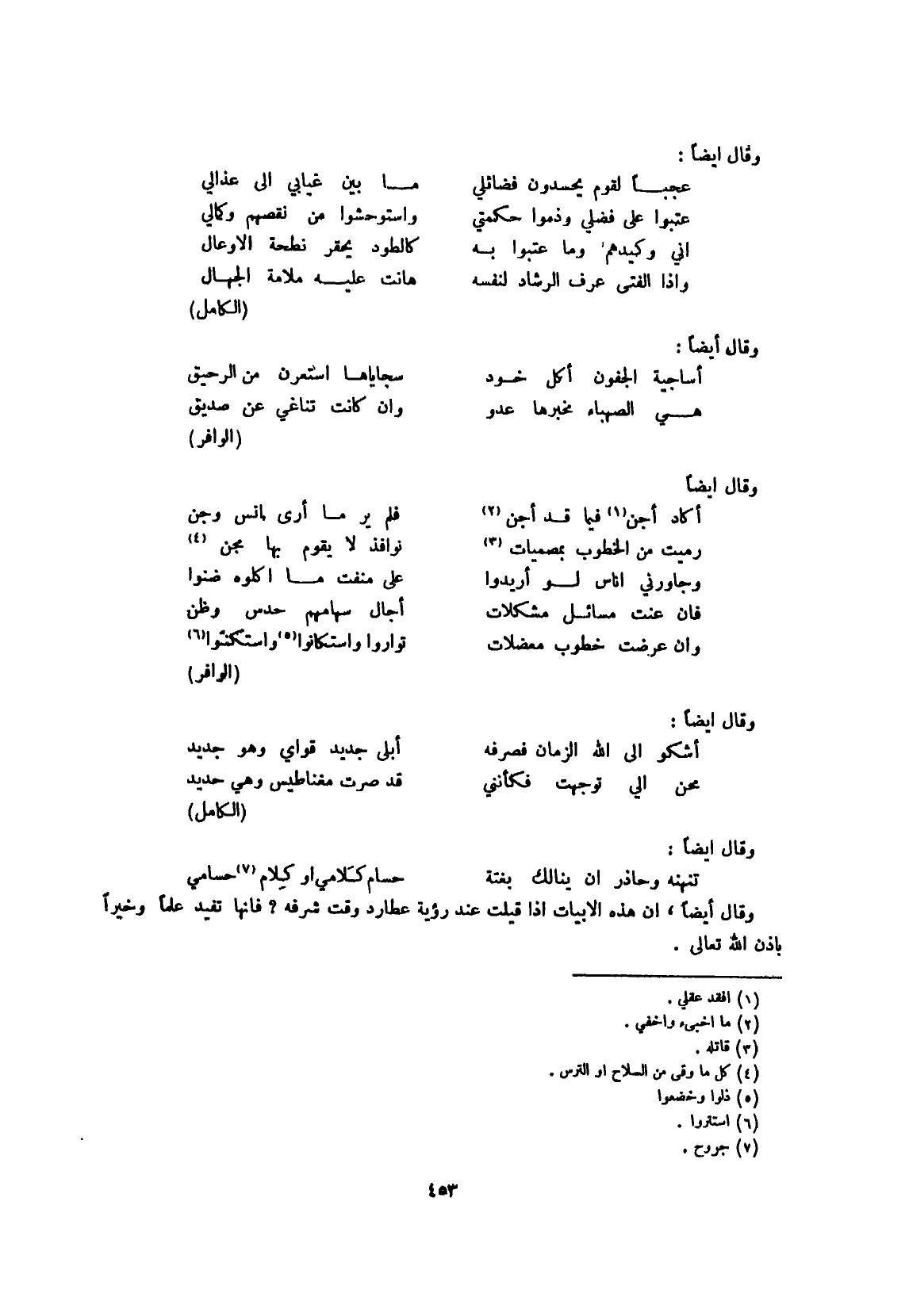 (وَإِذا الْفَتى عرف الرشاد لنَفسِهِ ... هَانَتْ عَلَيْهِ ملامة الْجُهَّال) الْكَامِل
