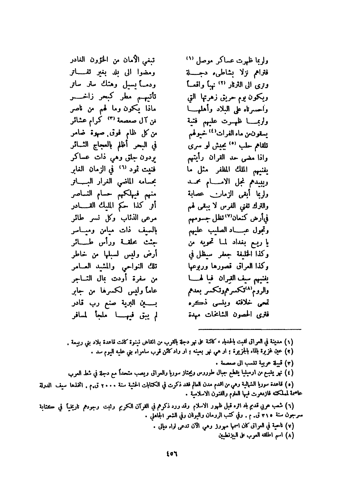 (وَكَذَا الْعرَاق قُصُورهَا وربوعها ... تِلْكَ النواحي والمشيد العامر)
