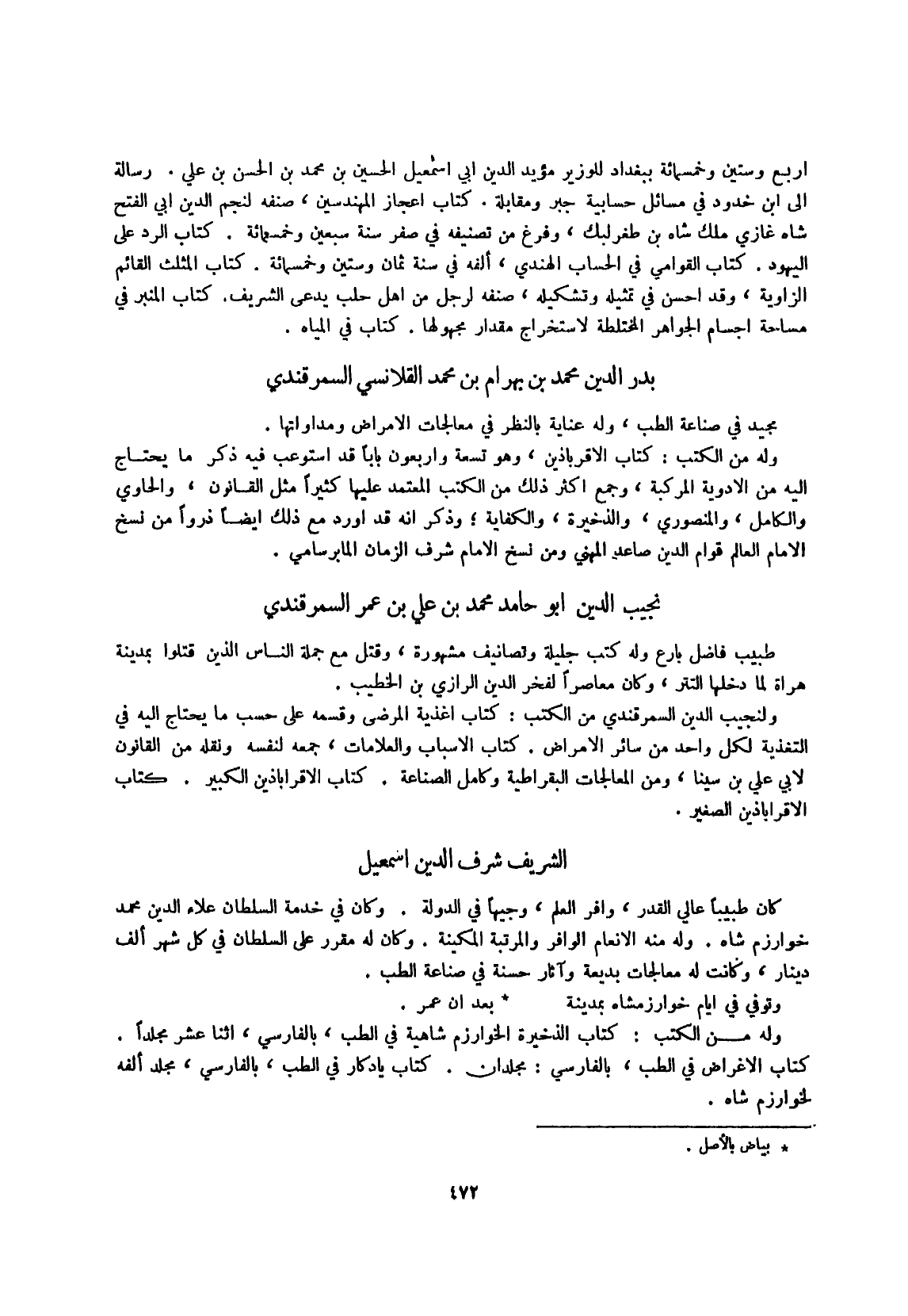 ولنجيب الدّين السَّمرقَنْدِي من الْكتب كتاب أغذية المرضى وقسمه على حسب مَا يحْتَاج إِلَيْهِ فِي التغذية لكل وَاحِد من سَائِر الْأَمْرَاض
