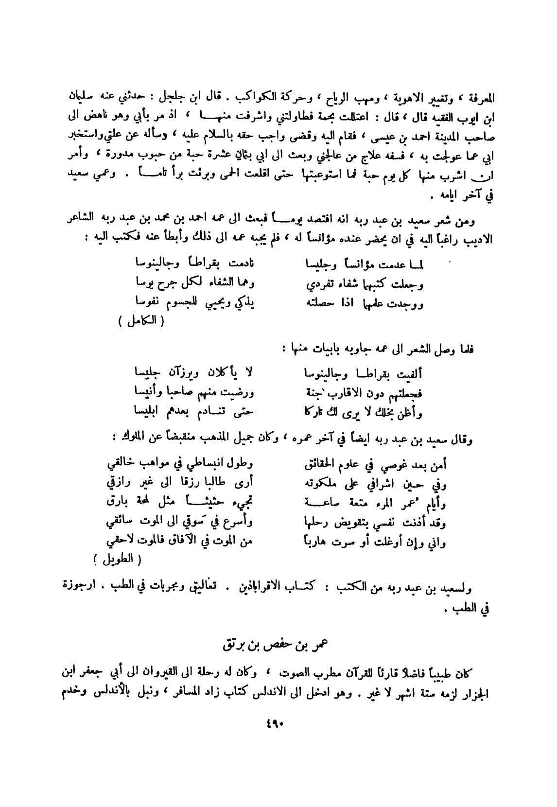 (لما عدمت مؤانسا وجليسا ... نادمت بقراطا وجالينوسا)