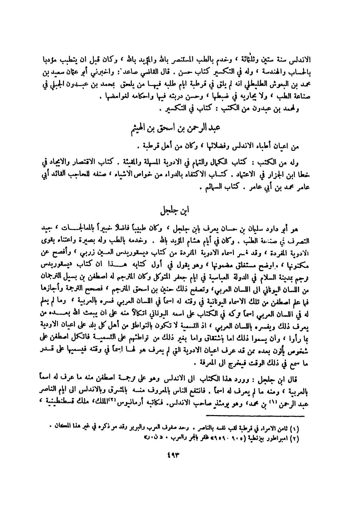 قَالَ ابْن جلجل وَورد هَذَا الْكتاب إِلَى الأندلس وَهُوَ على تَرْجَمَة اصطفن مِنْهُ مَا عرف لَهُ اسْما بِالْعَرَبِيَّةِ وَمِنْه مَا لم يعرف لَهُ اسْما