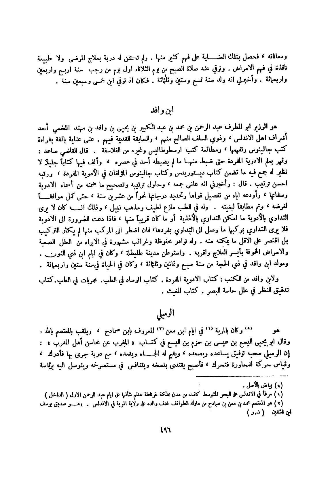 وَلابْن وَافد من الْكتب كتاب الْأَدْوِيَة المفردة