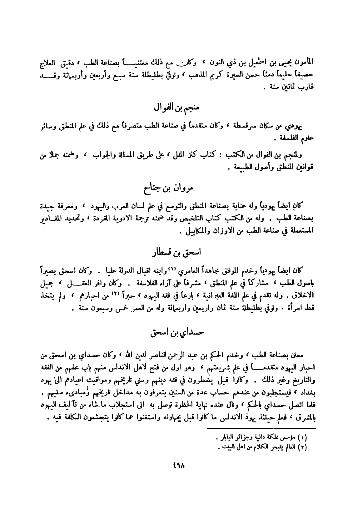 معتن بصناعة الطِّبّ وخدم الحكم بن عبد الرَّحْمَن النَّاصِر لدين الله وَكَانَ حسداي بن إِسْحَاق من أَحْبَار الْيَهُود مُتَقَدما فِي علم شريعتهم وَهُوَ أول من فتح لأهل الأندلس مِنْهُم بَاب علمهمْ من الْفِقْه والتاريخ وَغير ذَلِك