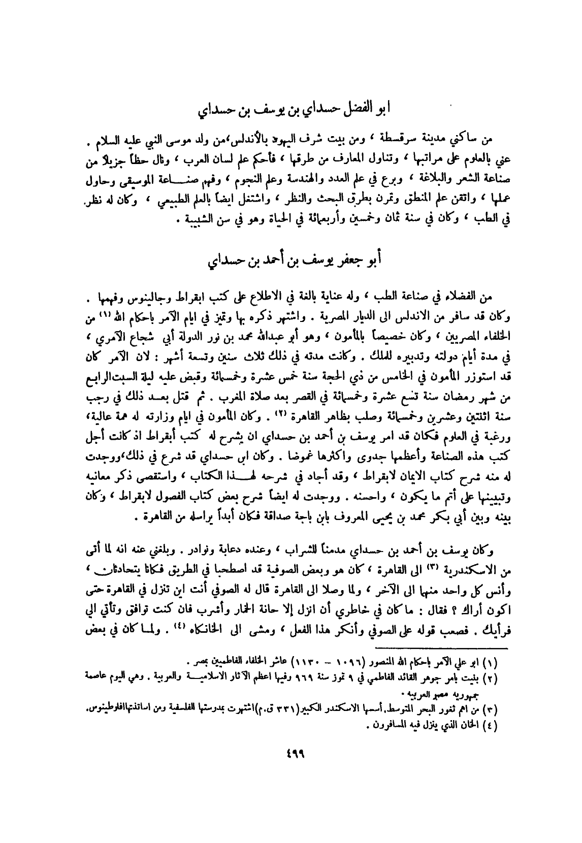 وَكَانَ ابْن حسداي قد شرع فِي ذَلِك وَوجدت لَهُ مِنْهُ شرح كتاب الْأَيْمَان لأبقراط وَقد أَجَاد فِي شَرحه لهَذَا الْكتاب واستقصى ذكر مَعَانِيه وتبيينها على أتم مَا يكون وَأحسنه
