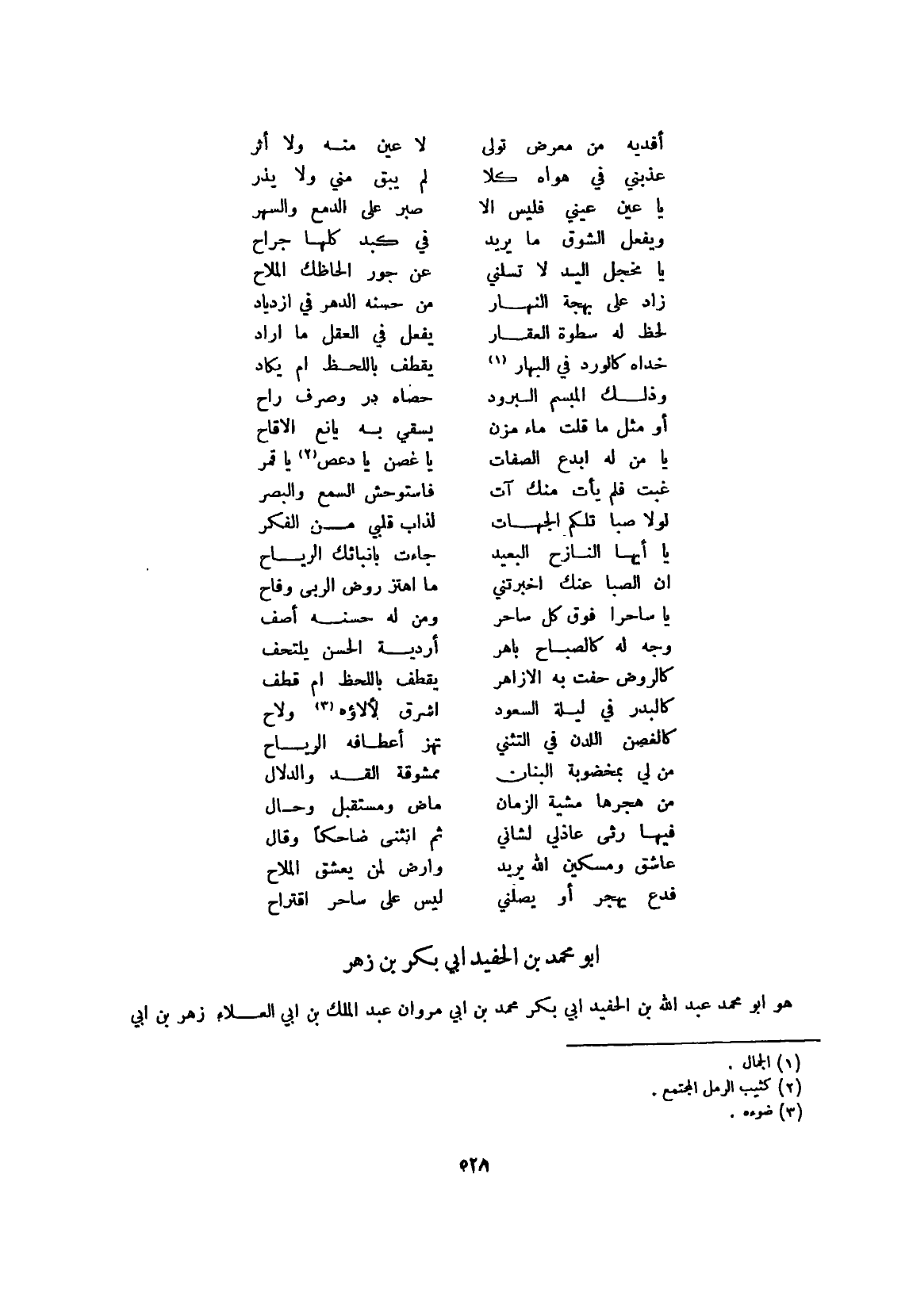 (يَا من لَهُ أبدع الصِّفَات ... يَا غُصْن يَا دعص يَا قمر)