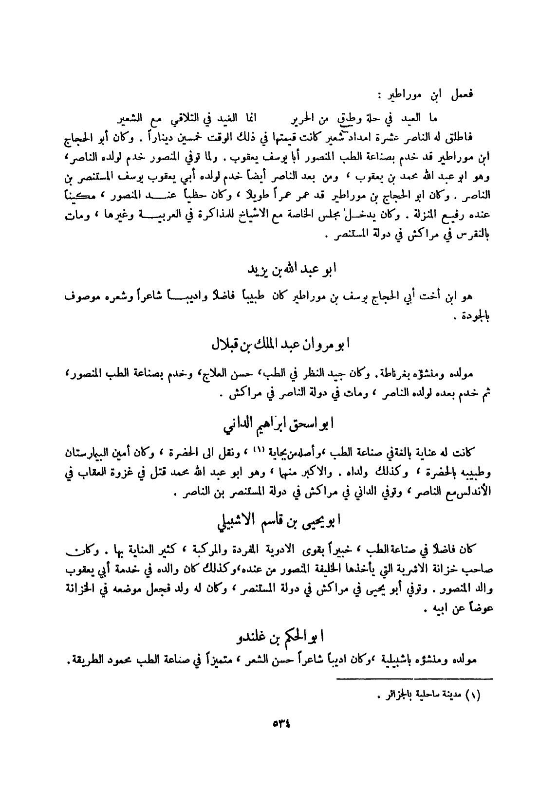 وَكَانَ أَبُو الْحجَّاج ابْن موراطير قد خدم بصناعة الطِّبّ الْمَنْصُور أَبَا يُوسُف يَعْقُوب