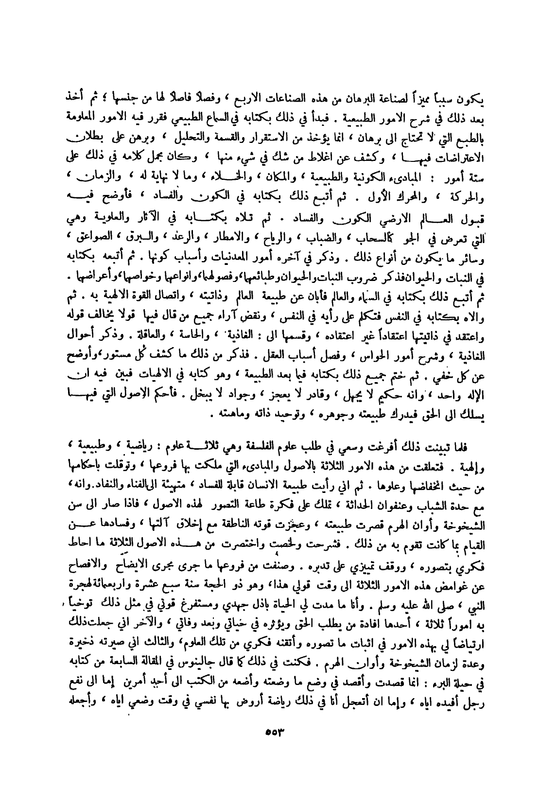 وَأَنا مَا مدت لي الْحَيَاة باذل جهدي ومستفرغ قوتي فِي مثل ذَلِك توخيا بِهِ أمورا ثَلَاثَة أَحدهَا إِفَادَة من يطْلب الْحق ويؤثره فِي حَياتِي وَبعد وفاتي وَالْآخر إِنِّي جعلت ذَلِك ارتياضا لي بِهَذِهِ الْأُمُور فِي إِثْبَات مَا تصَوره وأتقنه فكري من تِلْكَ الْعُلُوم وَالثَّالِث إِنِّي صيرته ذخيرة وعدة لزمان الشيخوخة وَأَوَان الْهَرم