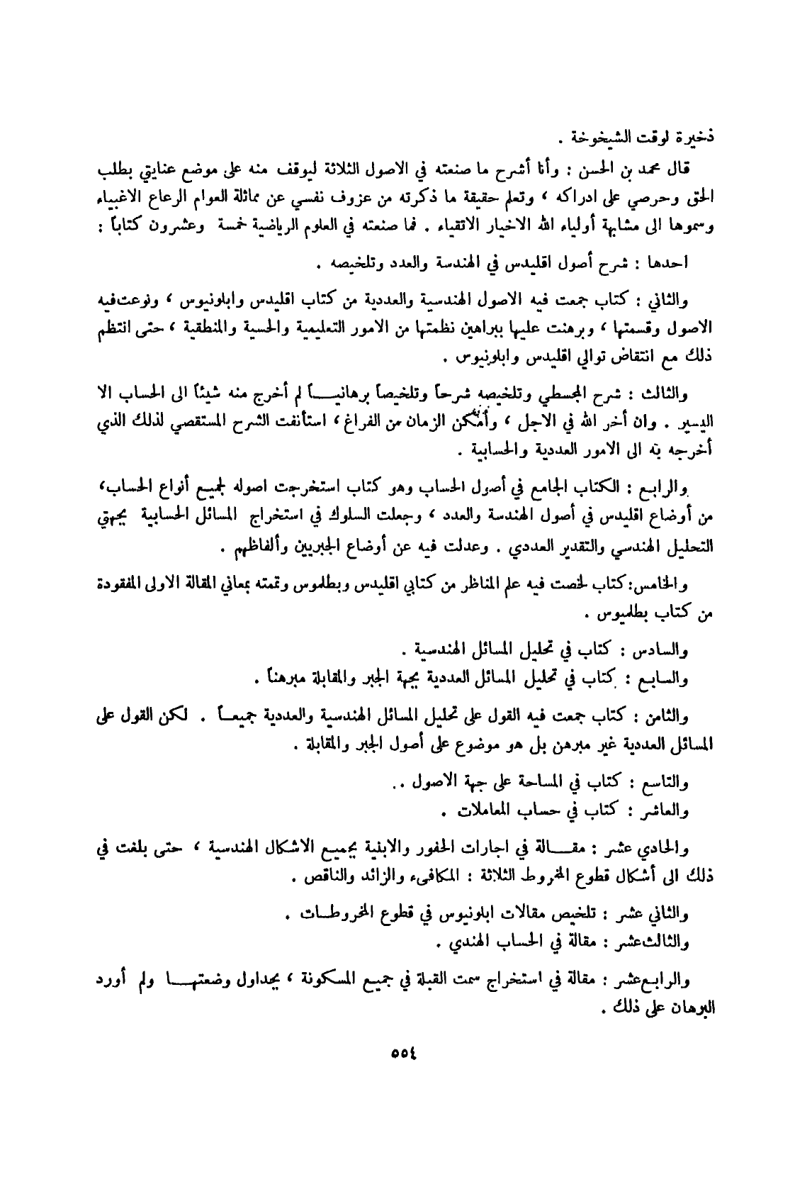 فَمَا صَنعته فِي الْعُلُوم الرياضية خَمْسَة وَعِشْرُونَ كتابا