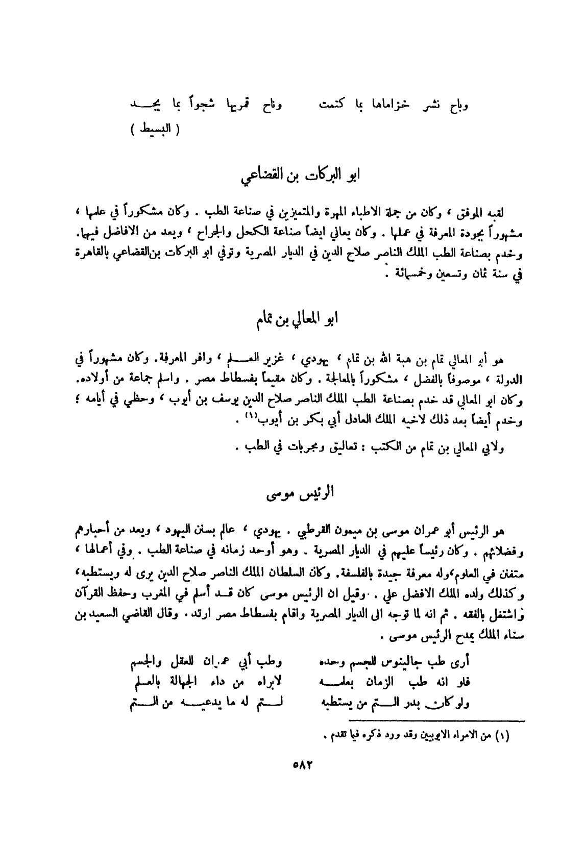 وَقَالَ القَاضِي السعيد بن سناء الْملك يمدح الرئيس مُوسَى