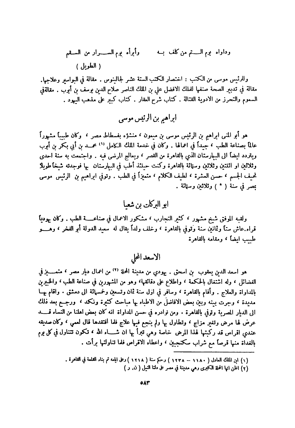 يَهُودِيّ من مَدِينَة الْمحلة من أَعمال ديار مصر متميز فِي الْفَضَائِل وَله اشْتِغَال بالحكمة واطلاع على دقائقها وَهُوَ من الْمَشْهُورين فِي صناعَة الطِّبّ والخبيرين بالمداواة والعلاج