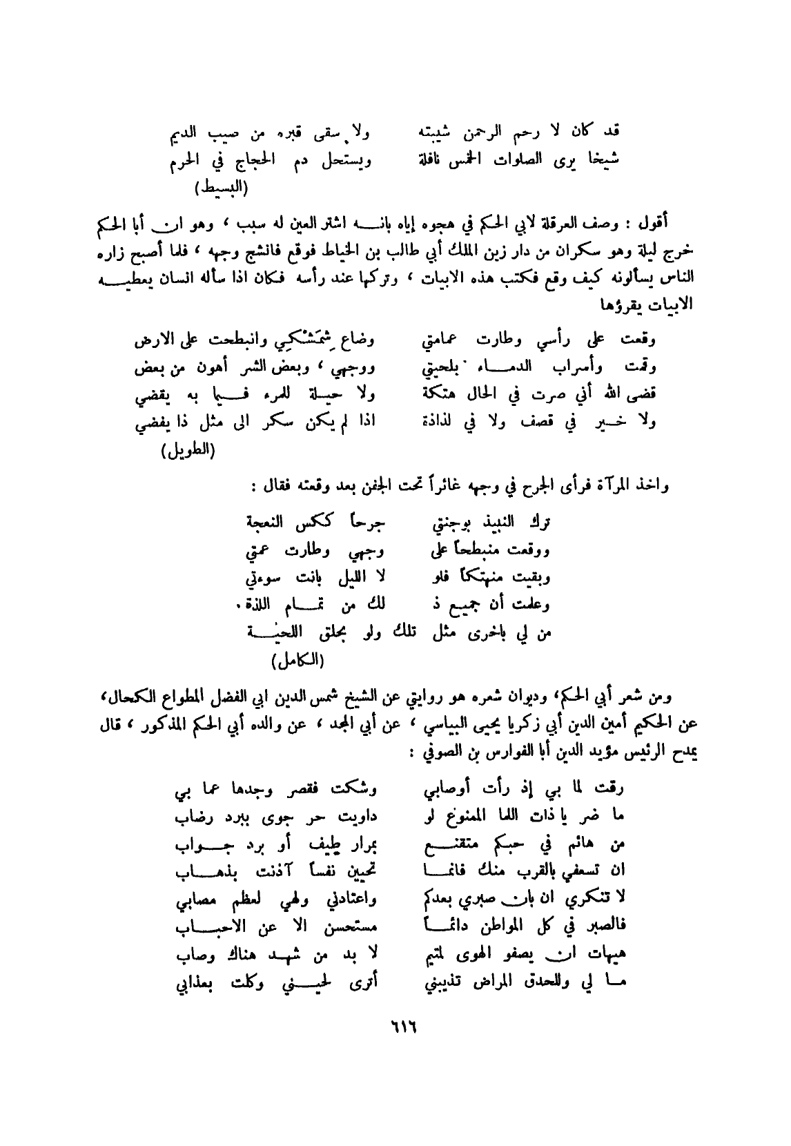 وَمن شعر أبي الحكم وديوان شعره هُوَ روايتي عَن الشَّيْخ شمس الدّين أبي الْفضل المطواع والكحال عَن الْحَكِيم أَمِين الدّين أبي زَكَرِيَّا يحيى البياسي عَن أبي الْمجد عَن وَالِده أبي الحكم الْمَذْكُور قَالَ يمدح الرئيس مؤيد الدّين أَبَا الفوراس بن الصُّوفِي