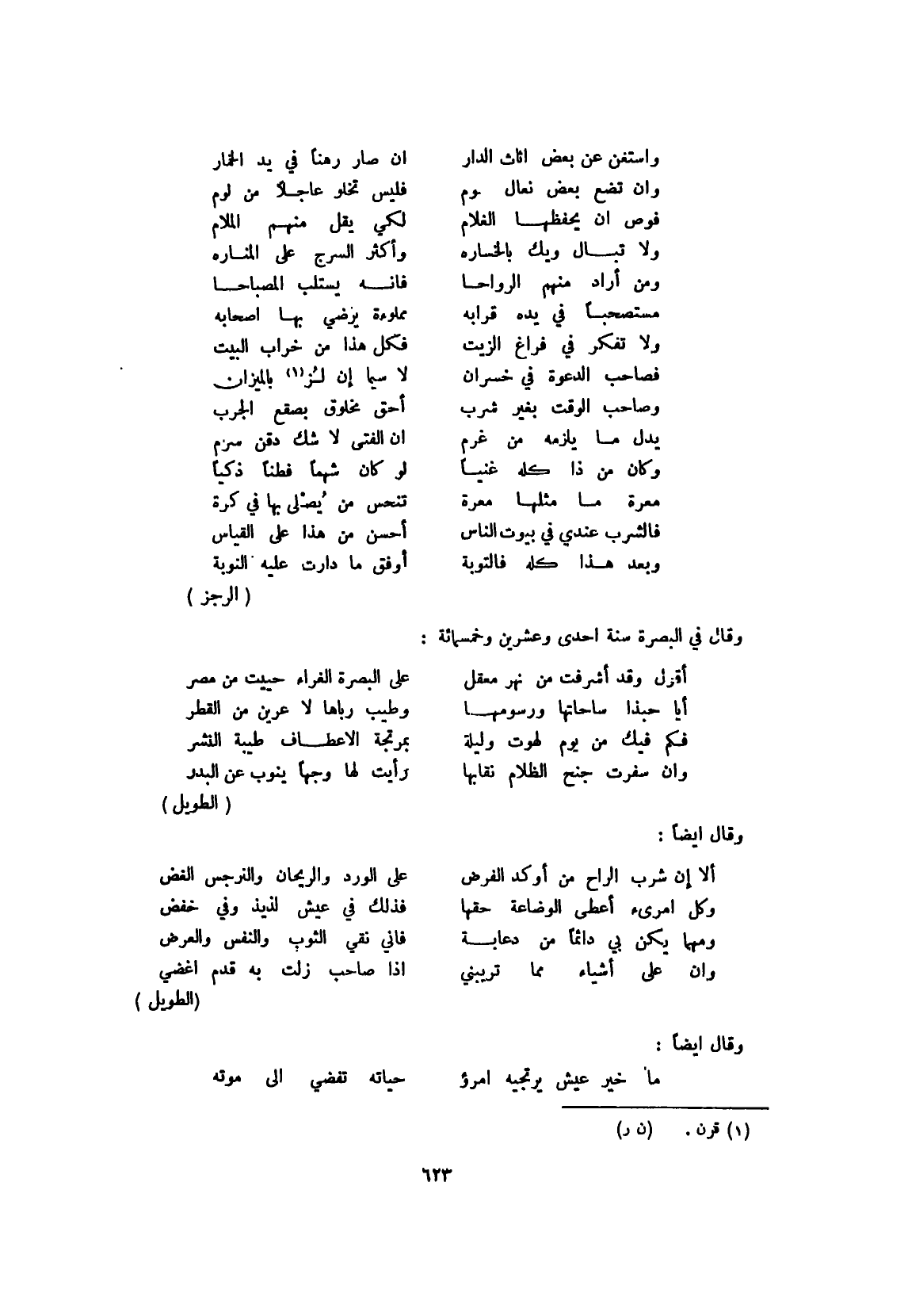 (فالشرب عِنْدِي فِي بيُوت النَّاس ... أحسن من هَذَا على الْقيَاس)