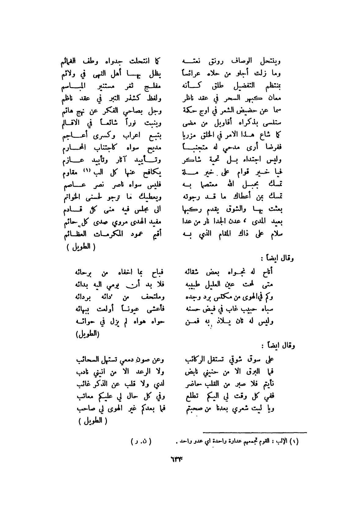 (سما عَن حضيض الشّعْر فِي أوج حِكْمَة ... وَجل بصاحي الْفِكر عَن نهج هائم)