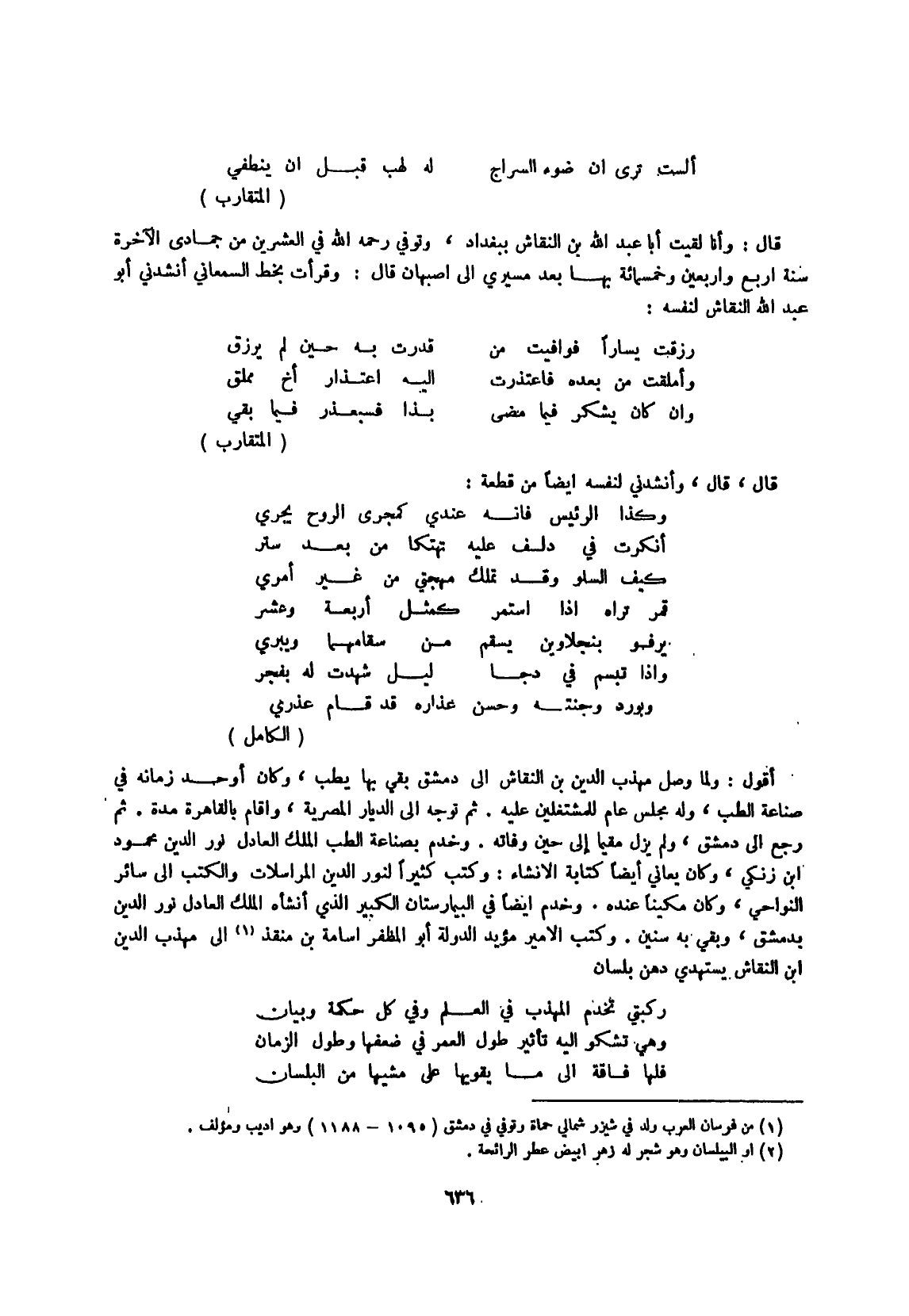 وَكتب الْأَمِير مؤيد الدولة أَبُو المظفر أُسَامَة بن منقذ إِلَى مهذب الدّين ابْن النقاش يستهدي دهن بِلِسَان