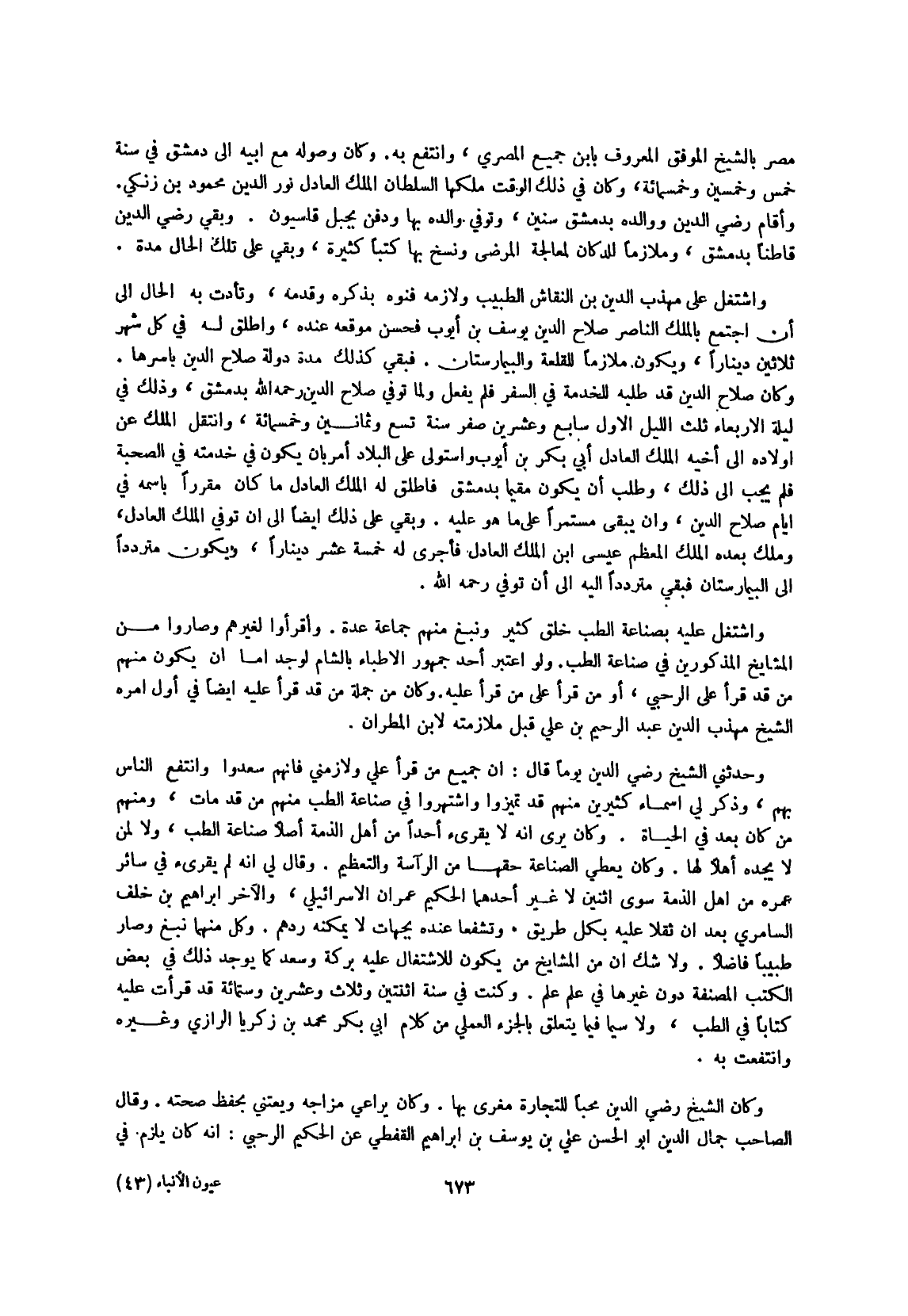 وَكنت فِي سنة اثْنَتَيْنِ وَثَلَاث وَعشْرين وسِتمِائَة قد قَرَأت عَلَيْهِ كتابا فِي الطِّبّ وَلَا سِيمَا فِيمَا يتَعَلَّق بالجزء العملي من كَلَام أبي بكر مُحَمَّد بن زَكَرِيَّا الرَّازِيّ وَغَيره وانتفعت بِهِ
