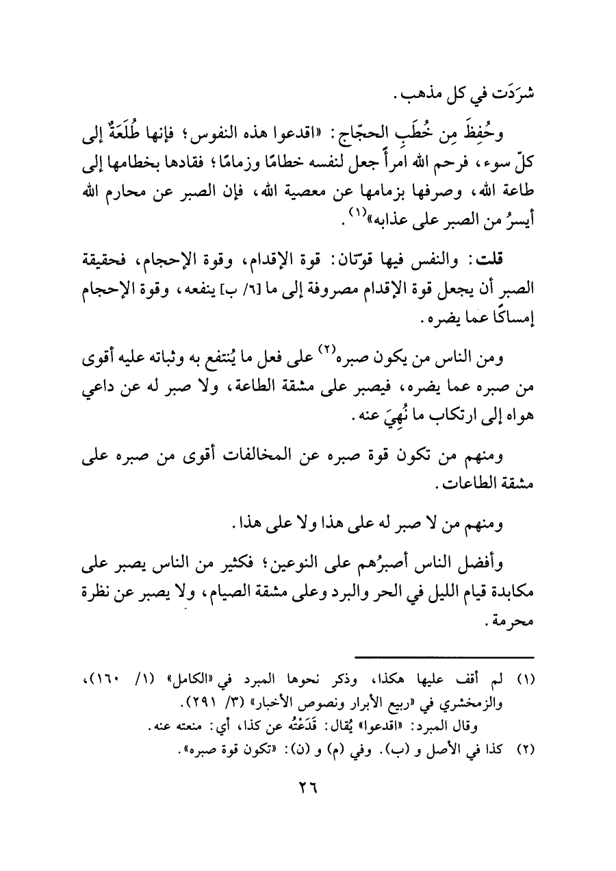 (¬٢) كذا في الأصل و (ب). وفي (م) و (ن): "تكون قوة صبره".