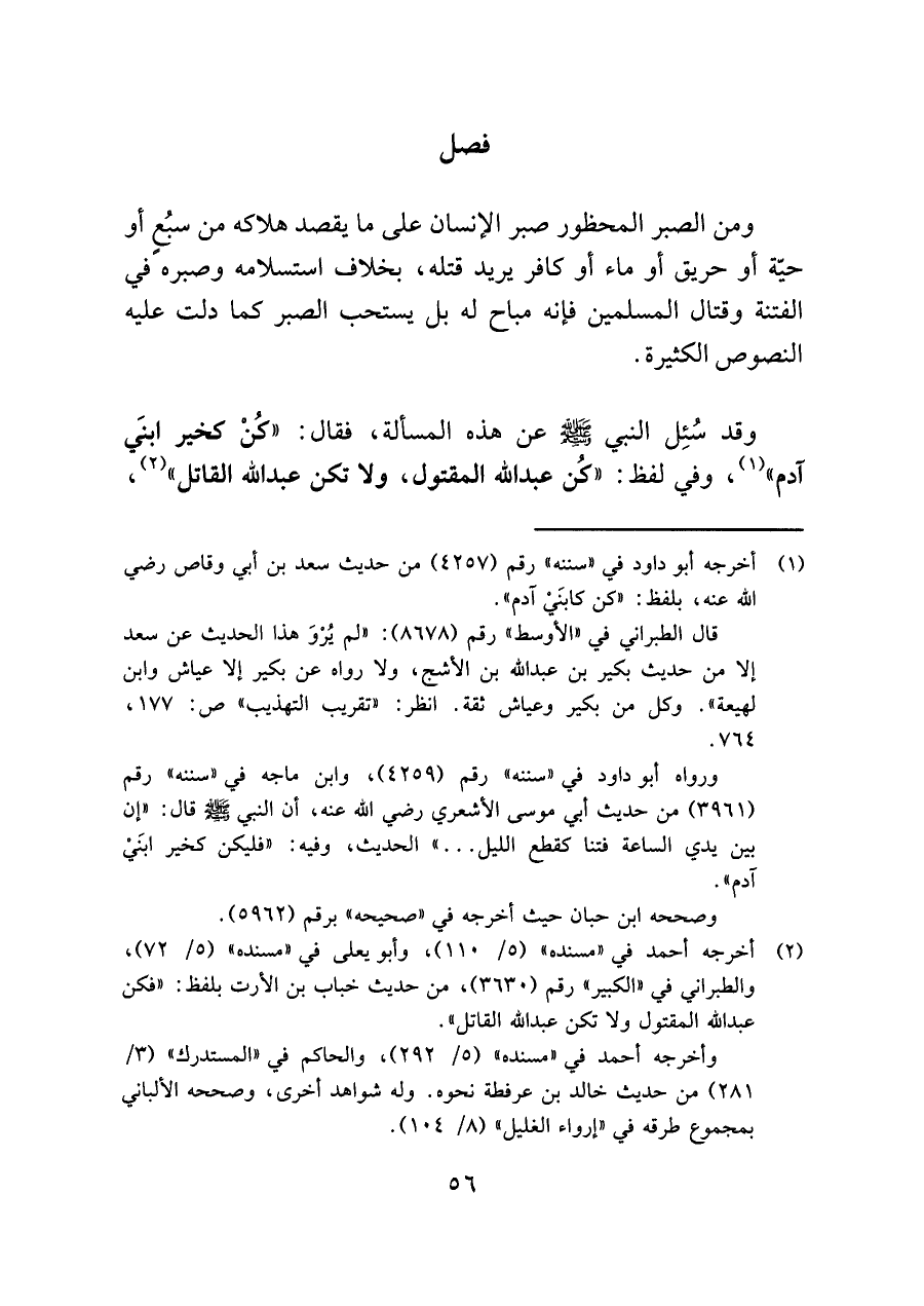 (¬١) أخرجه أبو داود في "سننه" رقم (٤٢٥٧) من حديث سعد بن أبي وقاص رضي اللَّه عنه، بلفظ: "كن كابنَيْ آدم".