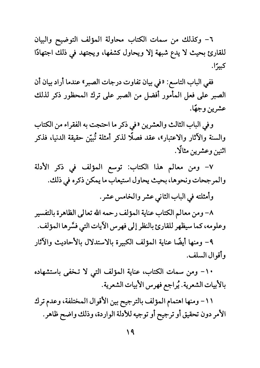 ٩ - ومنها أيضًا عناية المؤلف الكبيرة بالاستدلال بالأحاديث والآثار، وأقوال السلف.