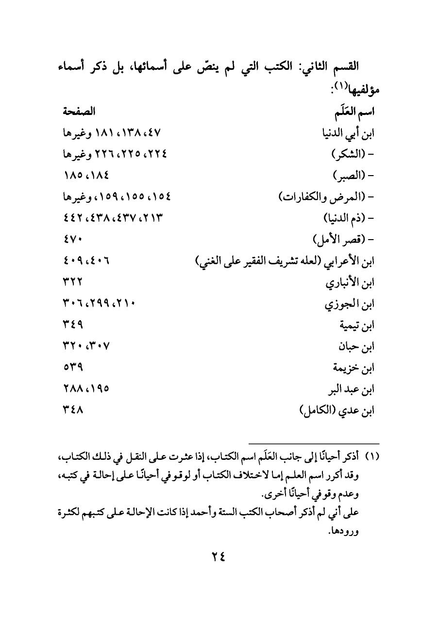 القسم الثاني: الكتب التي لم ينصّ على أسمائها، بل ذكر أسماء مؤلفيها (¬١):