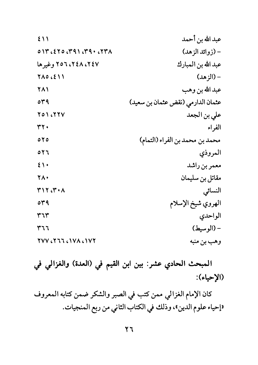 المبحث الحادي عشر: بين ابن القيم في (العدة) والغزالي في (الإحياء):