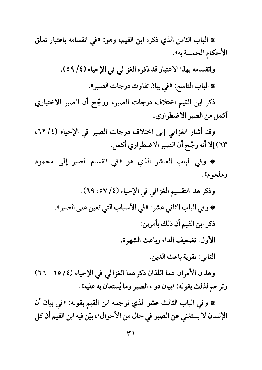 وقد أشار الغزالي إلى اختلاف درجات الصبر في الإحياء (٤/ ٦٢، ٦٣) إلا انه رجّح أن الصبر الاضطراري أكمل.