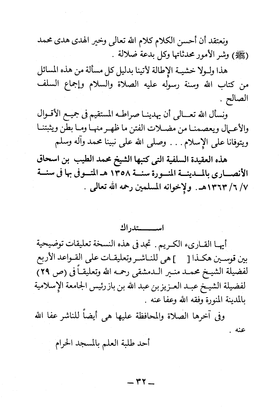 وأرسل المغيرة بن شعبة وأبا سفيان صخر بن حرب إلى اللات فهدماها، وجعلا مكانها مسجداً بالطائف، وبعث رسول الله صلى الله عليه وسلم إلى مناة أبا سفيان صخر بن حرب فهدمها، ويقال هدمها علي بن أبي طالب. فالنبي صلى الله عليه وسلم جاء بالدين الحق، وإخلاص العبودية، وإفراد المعبود بالحق، وإبطال العادات القبيحة، وكل ما يشوبه شيء من الشرك، وجرى على ذلك أصحابه العظام وتابعوه الكرام من بعده إلى أن اختلط الحابل بالنابل واستحوذ الشيطان وغواة الباطل على عقول كثير من المسلمين، فجددوا عبادة الأوثان لا سيما في عصرنا الحاضر عصر الجهل المركب والصور المزخرفة، فلقد طم البلاء وعم، والعلماء ساكتون إلا من شاء الله، فإنا لله وإنا إليه راجعون. علقه الشيخ محمد منير الدمشقى.