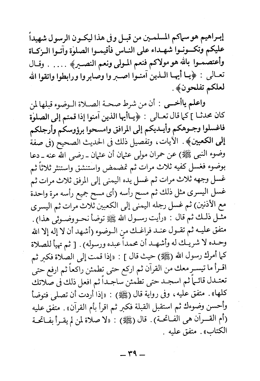 فهذا ما نعتقده وندين الله في أسمائه وصفاته بلا تكييف، ولا تشبيه ولا تمثيل ولاتعطيل كما قال تعالى {لَيْسَ كَمِثْلِهِ شَيْءٌ وَهُوَ السَّمِيعُ الْبَصِيرُ} [الشورى: 11] (¬1) ونشهد أن محمداً عبده ورسوله إلى جميع الثقلين الجن والِإنس، وأنه بلغ الرسالة وأدى الأمانة، ونصح الأمة، ولم يزل مجاهداً في سبيل الله حتى كمل الله به الدين كما قال تعالى {الْيَوْمَ أَكْمَلْتُ لَكُمْ دِينَكُمْ وَأَتْمَمْتُ عَلَيْكُمْ نِعْمَتِي وَرَضِيتُ لَكُمُ الْإِسْلَامَ دِينًا} [المائدة: 3] (¬2) ثم استأثر به ربه وألحقه بالرفيق الأعلى، وفارق الدنيا وأهلها وأنه لا يؤمن أحد حتى يكون هواه تبعاً لما جاء به، وحتى يكون هو أحب إليه من نفسه وولده والناس أجمعين، وأن معنى محبته صلى الله عليه وسلم طاعته فيما أمر وتصديقه فيما أخبر، واجتناب ما نهى عنه وزجر،