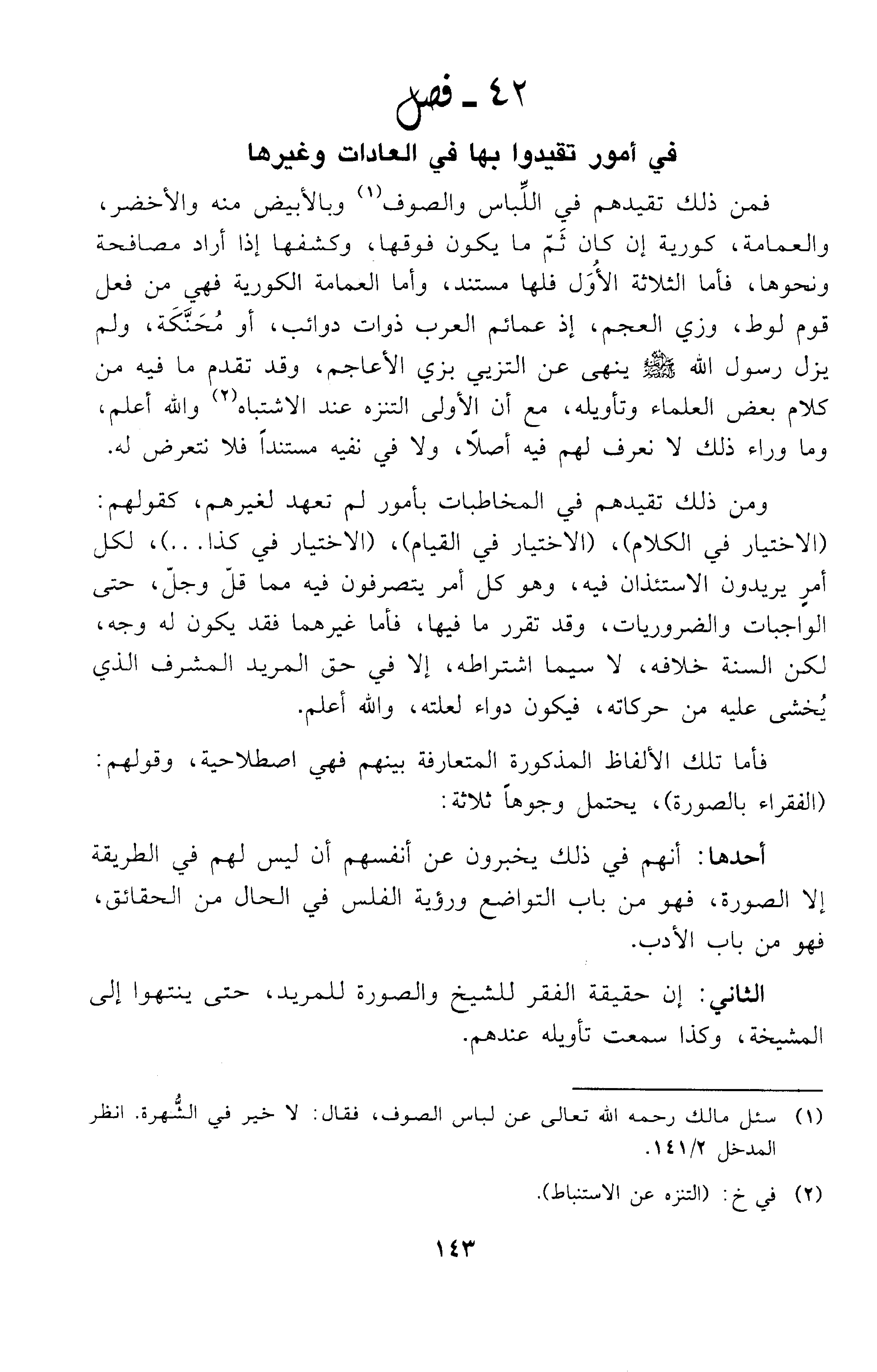 أحدها: أنه صار شعارا للمبتدعة ببلاد المغرب، إذ لا يمتاز به إلا وهبي أو جزناري (¬1) أو نحو هذا، فيكون إغراء للناس على عرض فاعله، وسببا لسوء الظن به، أو إضلالا للعوام باعتقاد الفضل لكل من يظهر به، وهذه كلها مضرة بالدين والدنيا.