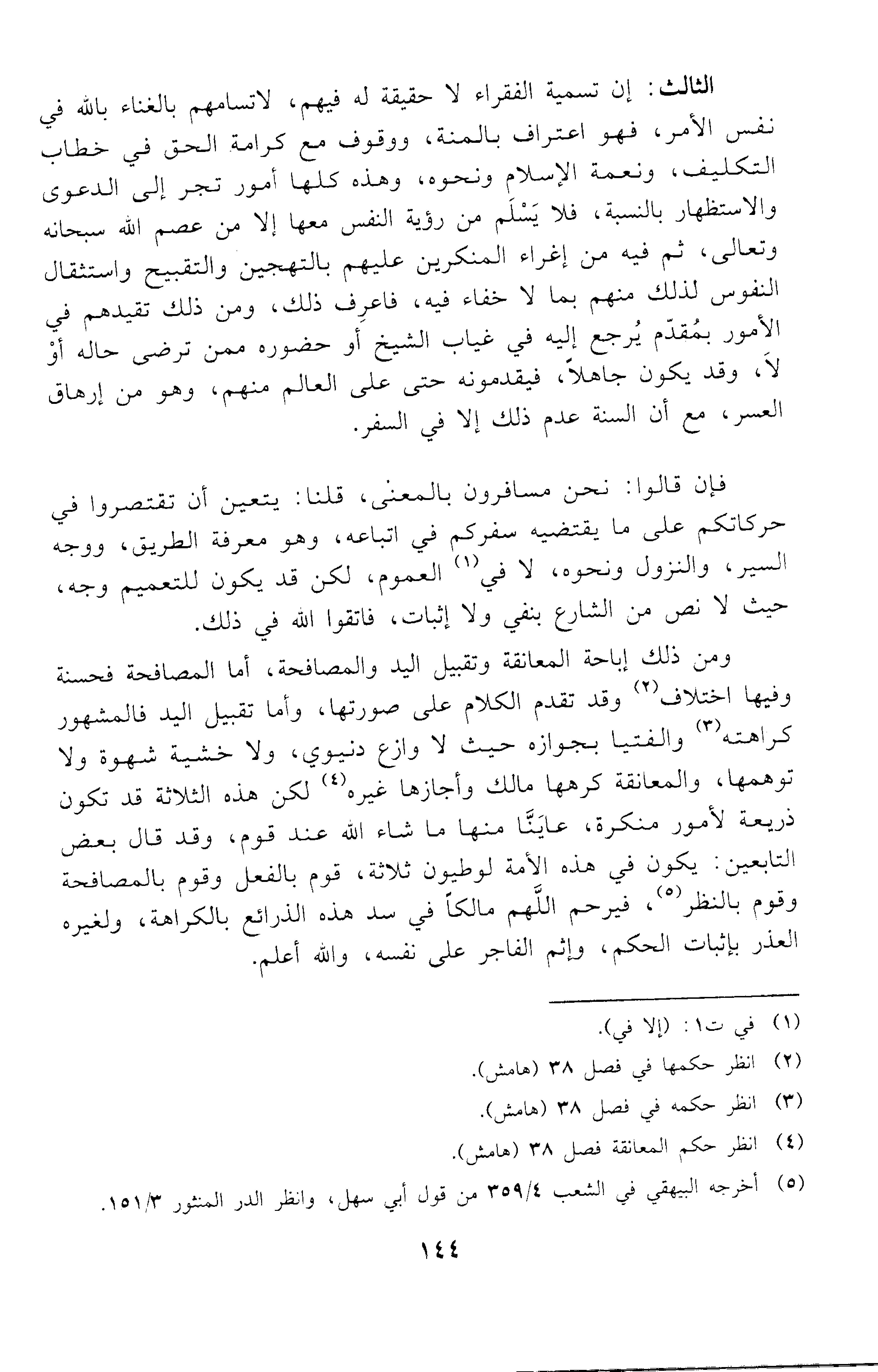 ومن ذلك أن طريق المصامدة حلق رأس التائب بالمقص، وبعضهم بالموسى، وهو شيء لا أصل له، غير ما يذكر من أن رسول الله (ص) قال لرجل أسلم وعليه شعر: "انزع عنك شعر الكفرة" (¬2) لكن يعارضه ما في