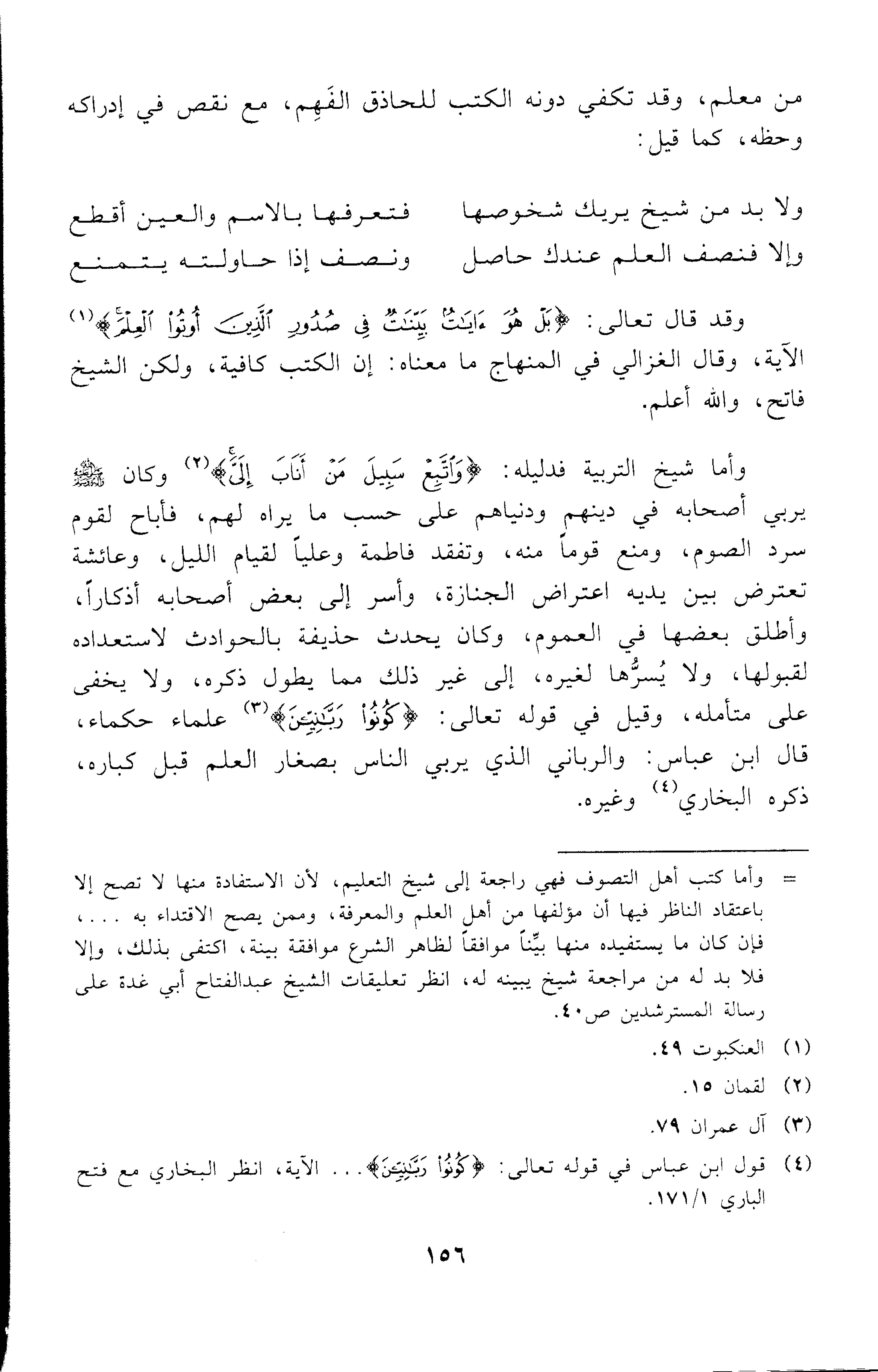 وجود طلبك، ولو اضطررت إلى الله اضطرار الأم لولدها إذا فقدته لوجدت الله منك قريبا ولك مجيبا، ولوجدت الوصول غير متعذر عليك، ولتوجه الحق تعالى بتيسير ذلك إليك، قال ابن عباد رحمه الله تعالى: وفي كلامه تنبيه على أن الشيخ من منح الله تعالى وهداياه للعبد المريد إذا صدق في إرادته، وبذل في مناصحة مولاه جهد استطاعته، لا على ما قد يتوهمه من لا علم له، وعند ذلك يوفقه الله تعالى لاستعمال الأدب معه، لما أشهده من عالي مرتبته، ورفيع درجته انتهى، وهو حسن جدا، وبالله التوفيق، ومنه الهداية.