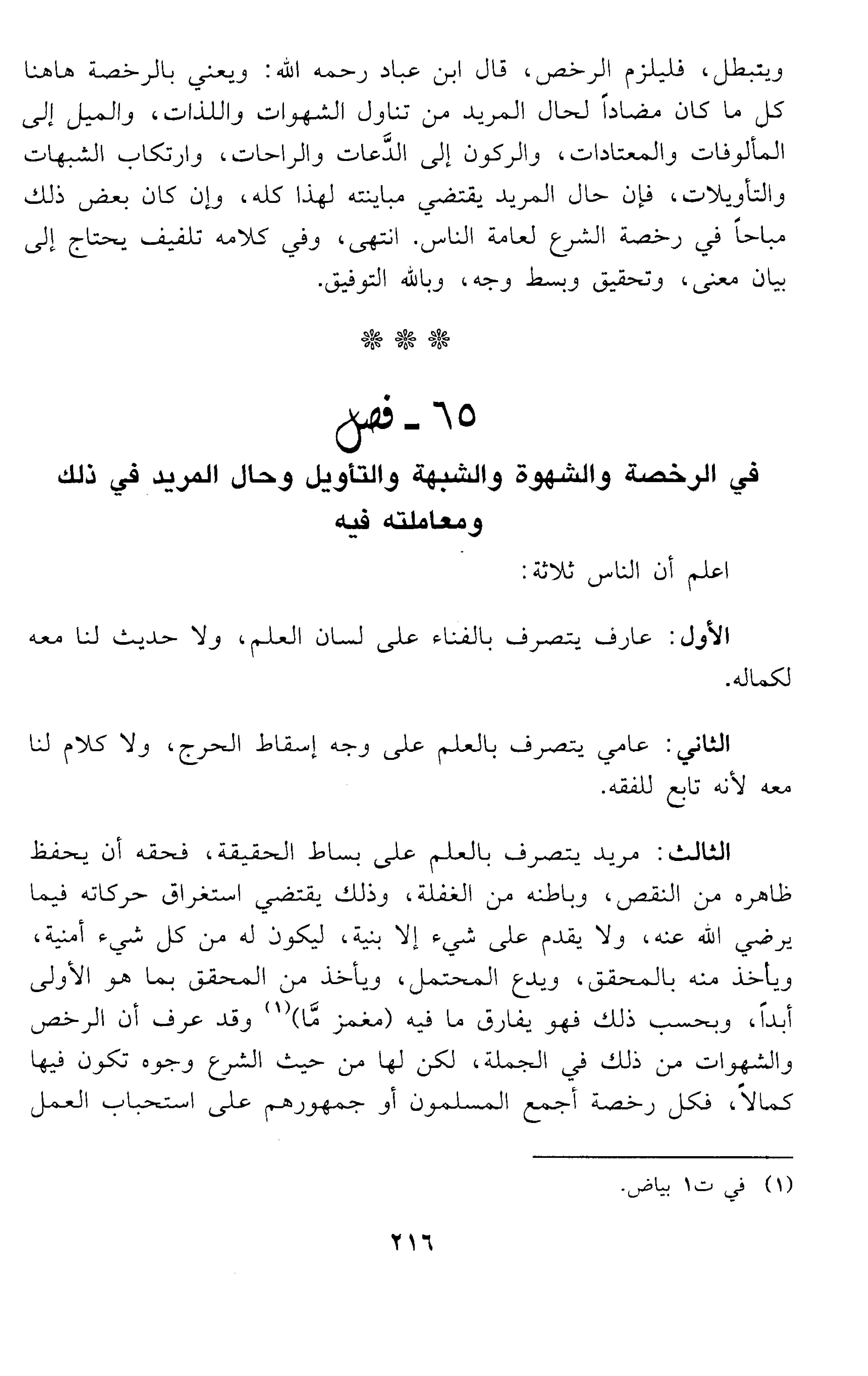 الثاني: حفظه حرمة الربوبية، بالوفاء والعزم، والأخذ بالحزم، والوقوف على حد العلم، فإذا عقدت مع الله عقدا إياك أن تحله إلا أن يحله عليك الشرع بوجه لا خلاف فيه ولا تردد، وإذا عزمت مع الله تعالى في شيء فلا تتوقف حتى تمضيه، ولا تؤخر طاعة وقت لوقت فتعاقب بقوتها أو بقوت مثلها، ولا تقدم على أمر حتى تعلم حكم الله فيه جملة وتفصيلا، فإن من لم يحفظ الحرمة فقد أعان الشيطان على نفسه.
